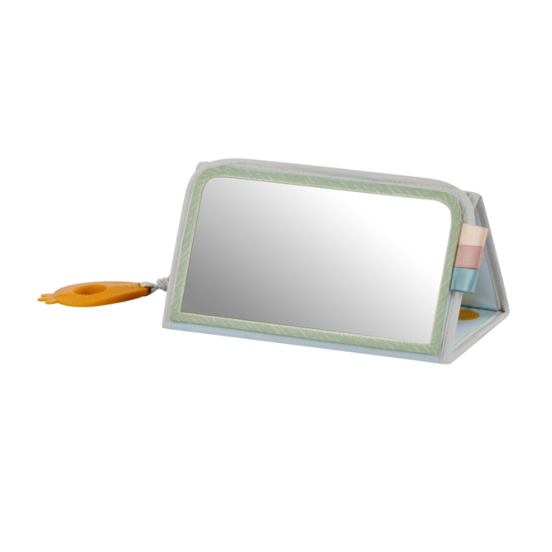 • Texturas variadas, um mordedor e um espelho convidam as mãozinhas e os olhinhos a explorar, estimulando os sentidos e apoiando o desenvolvimento inicial por meio da descoberta.