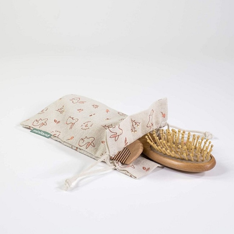 O conjunto de escova e pente é feito de madeira e outros componentes 100% naturais para pentear o bebé sem magoar. São antiestáticos, não quebram os cabelos e também respeitam o meio ambiente. Para bebés mais velhos, a escova de cerdas de madeira estimula o crescimento do cabelo, estimulando a circulação através da escovagem enquanto massaga.