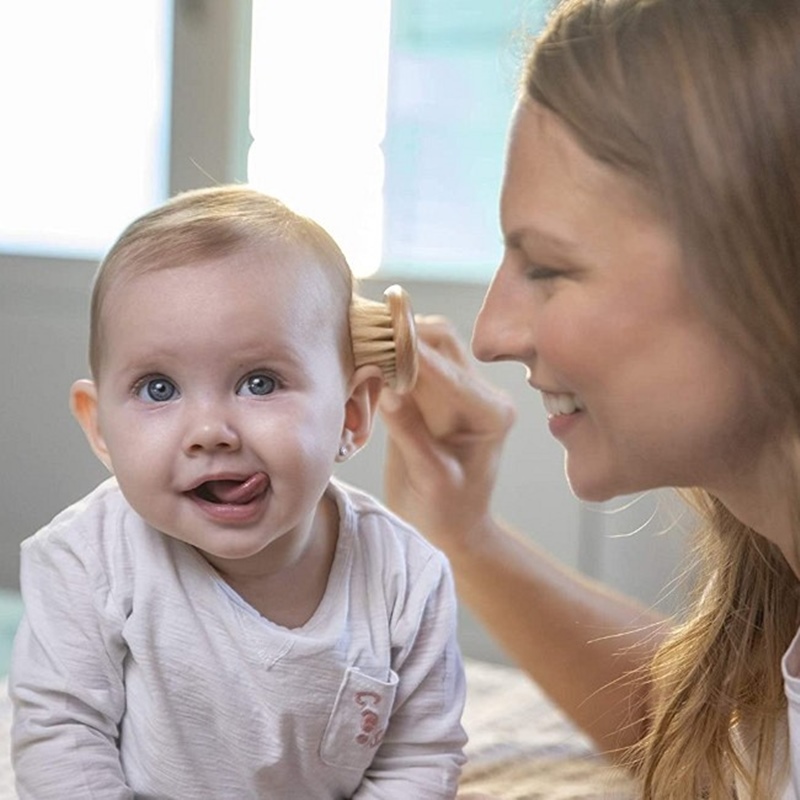 - Escova de cerdas de madeira para bebés mais velhos, que estimulam o crescimento do cabelo