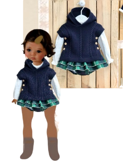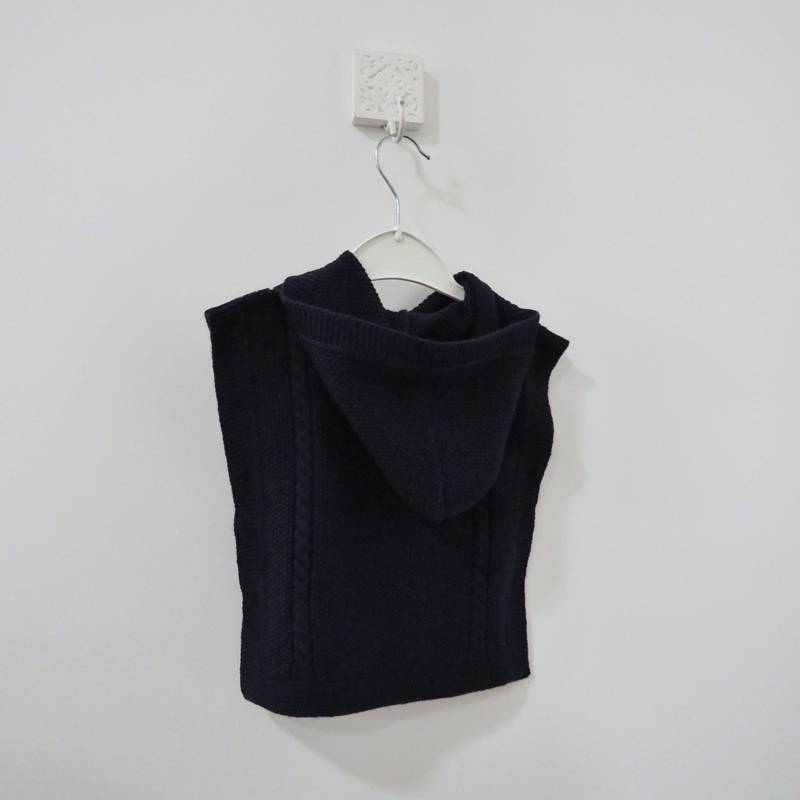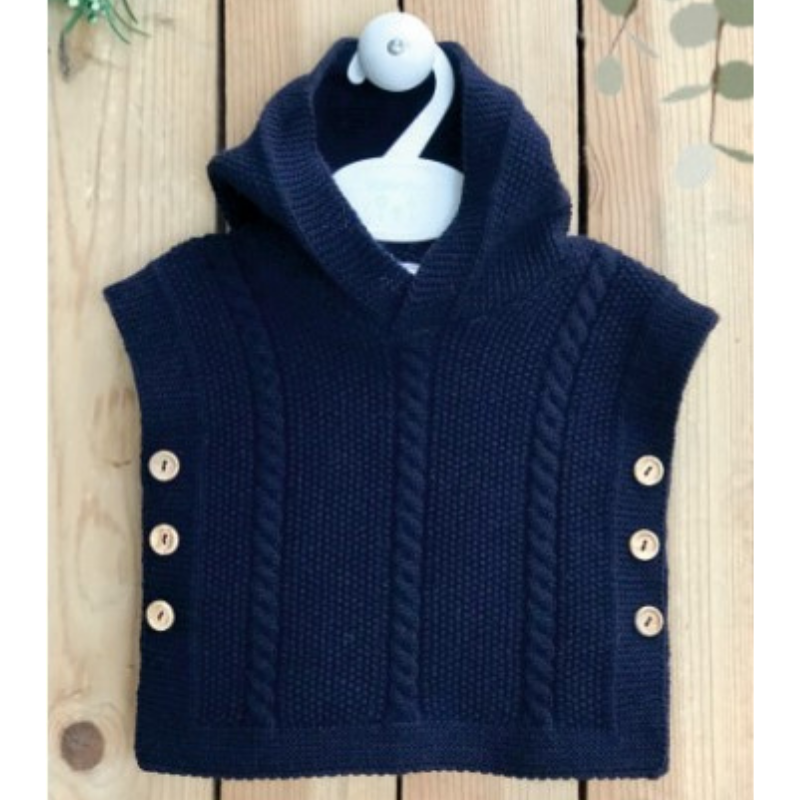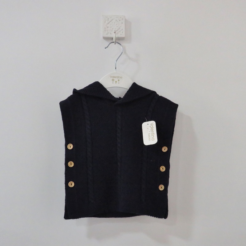 Colete de malha com capuz e botões nas laterais da Valentina.