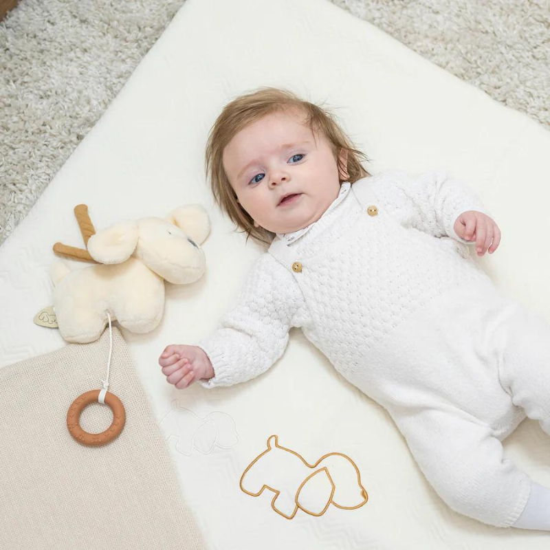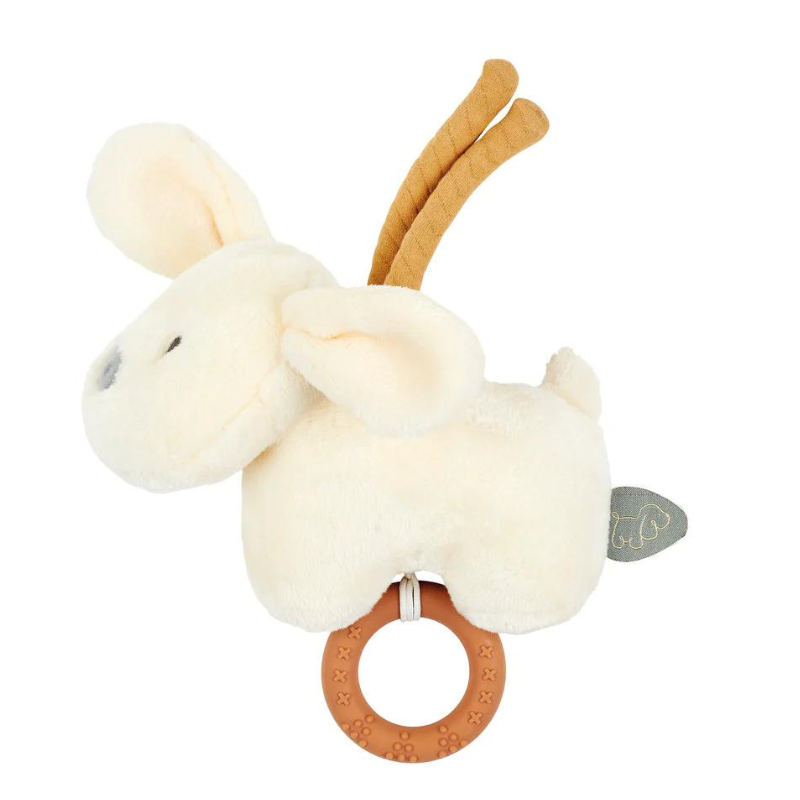 O lindo peluche Charlie com seu lindo pelo conquista os corações dos recém-nascidos em todo o mundo. O adorável cão oferece inúmeras possibilidades de agarrar - incluindo orelhas, patas, cauda ou o durável anel de silicone - e assim promove o desenvolvimento do tato e das habilidades motoras. A caixa de música integrada também proporciona a tranquilidade necessária para a criança nos momentos tristes com suas melodias suaves. Com os dois cordões na parte de trás, o peluche também pode ser facilmente amarrado ao berço ou ao carrinho.