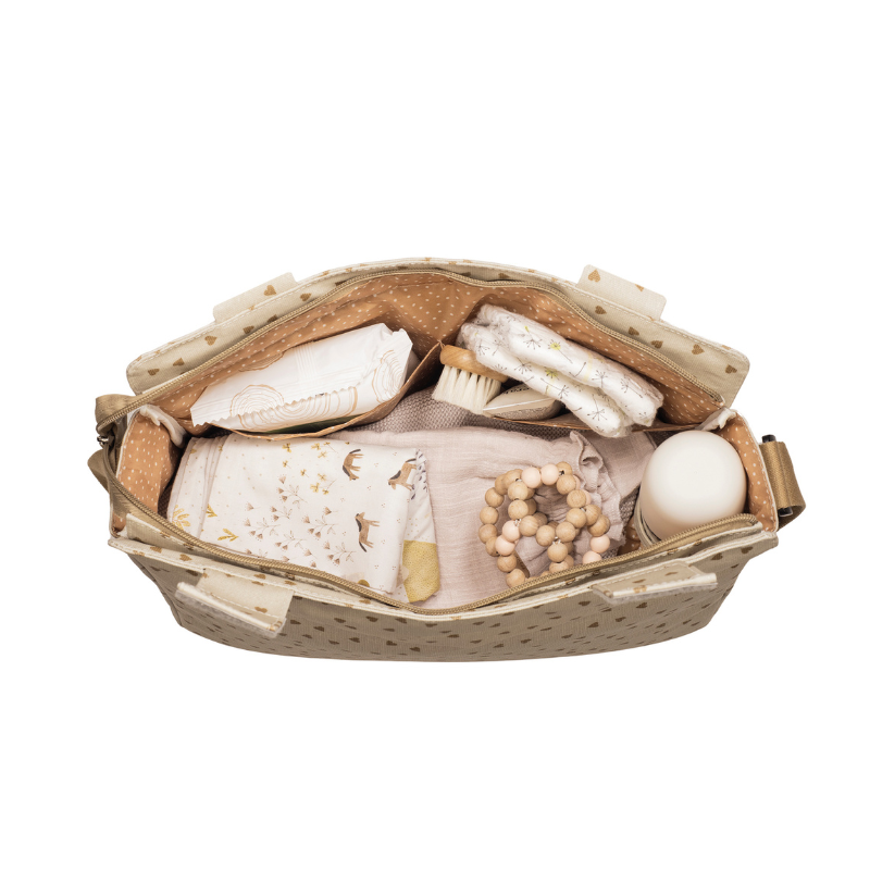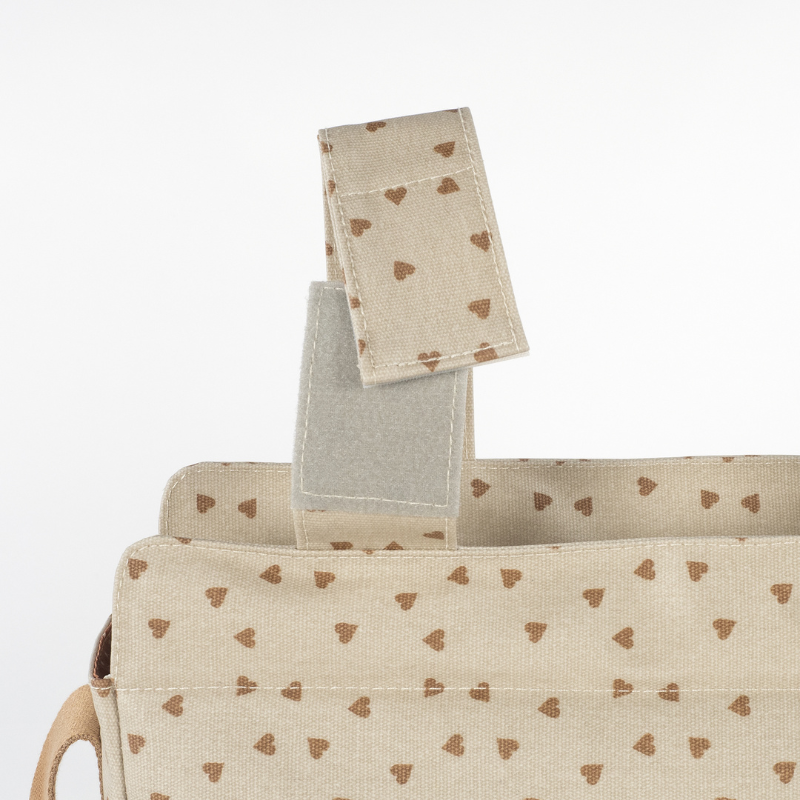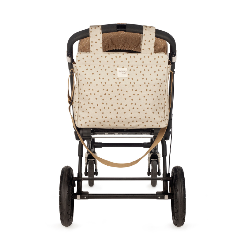 - Duas alças para pendurar no carrinho de passeio e alça para o ombro