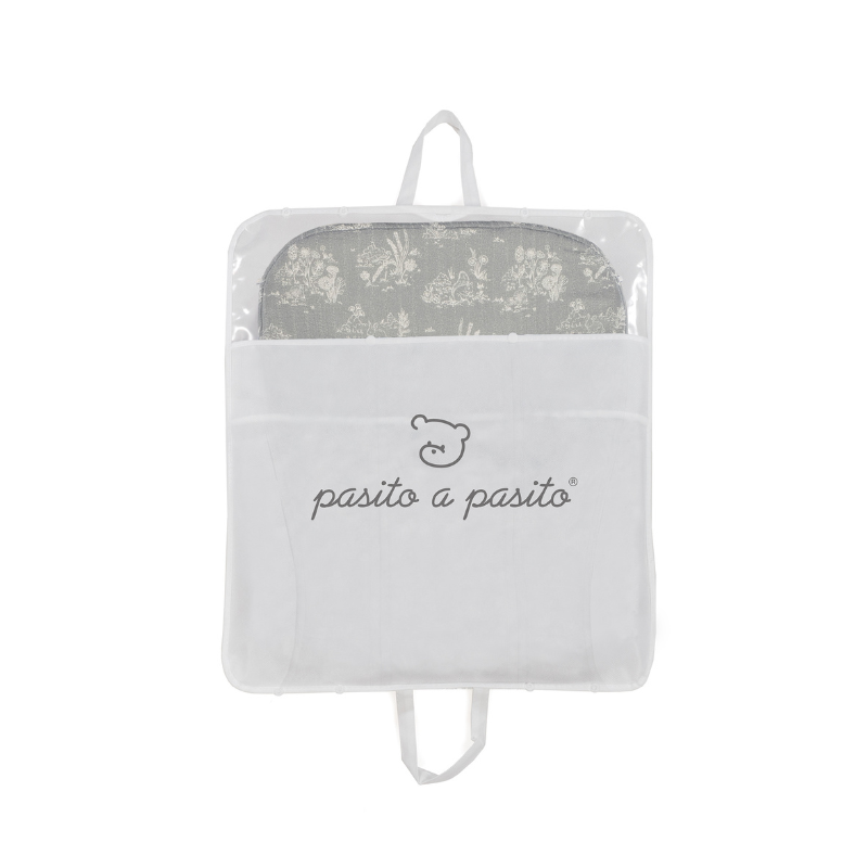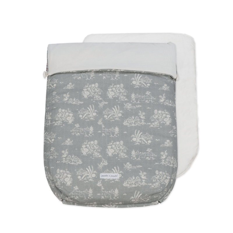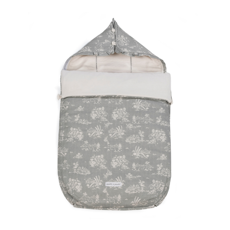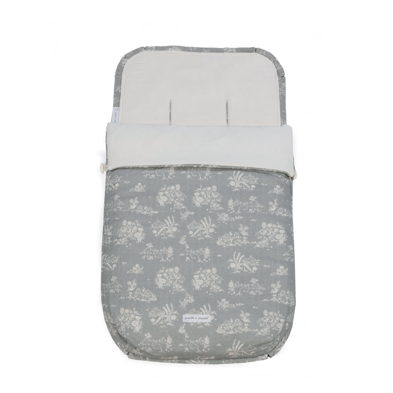 O saco 3 em 1 Toile de Jouy da Pasito a Pasito é um saco de dormir para bebé feito de tecido estampado de algodão muito macio. É um acessório básico 3 em 1 que pode ser usado em casa para cobrir a cadeira do Grupo 0 e também funciona muito bem como capa de alcofa. A parte de trás é feita com material anti-suor que evita a transpiração excessiva do bebé e protege a cadeira, tornando o caminhar mais confortável. Enchimento removível de fibra oca. É totalmente universal porque possui diversas aberturas (ilhós) necessárias para adaptá-lo à maioria das cadeiras auto, alcofas e carrinhos de passeio. Um acessório muito útil e versátil para as coisas do seu bebé. Depois de retirada a base, transforma-se num tapete leve para o carrinho. Uma manta acolchoada e fofa que permite desfrutar de um descanso mais agradável com seu aconchegante formato de ninho. É um design lindo, simples e confortável que cria um ninho para o seu bebé, mantendo-o coberto e protegido nos dias de frio.O saco adapta-se sem problemas a qualquer carro para lhe dar o conforto que necessita. Acabamentos de qualidade. Os produtos para bebé Pasito a Pasito têm um design muito diferente de todos os outros. Suas coleções caracterizam-se por um trabalho minucioso, sempre pensado do ponto de vista prático. Utilizam materiais de primeira qualidade para realçar a elegância e harmonia em cada uma das suas peças. Nossos modelos são exclusivos e têm um estilo inconfundível, pensados para as mães de hoje que gostam de bom gosto e que apreciam os detalhes tanto quanto nós.
