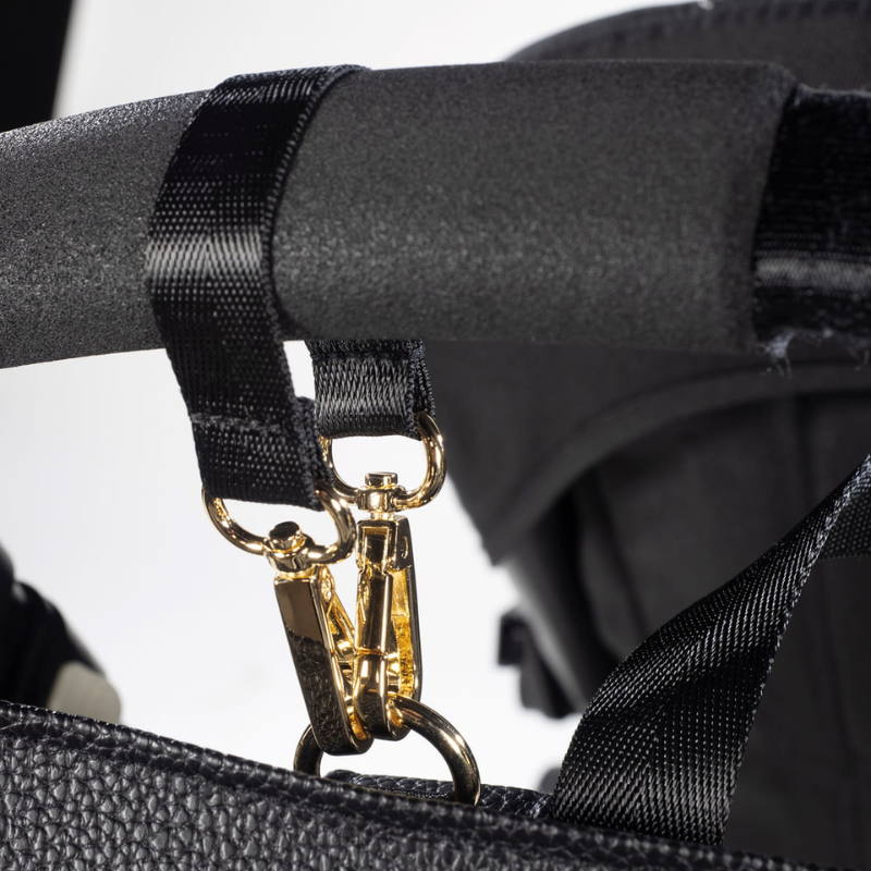 - Duas alças curtas, ajustáveis para colocação no carrinho de passeio