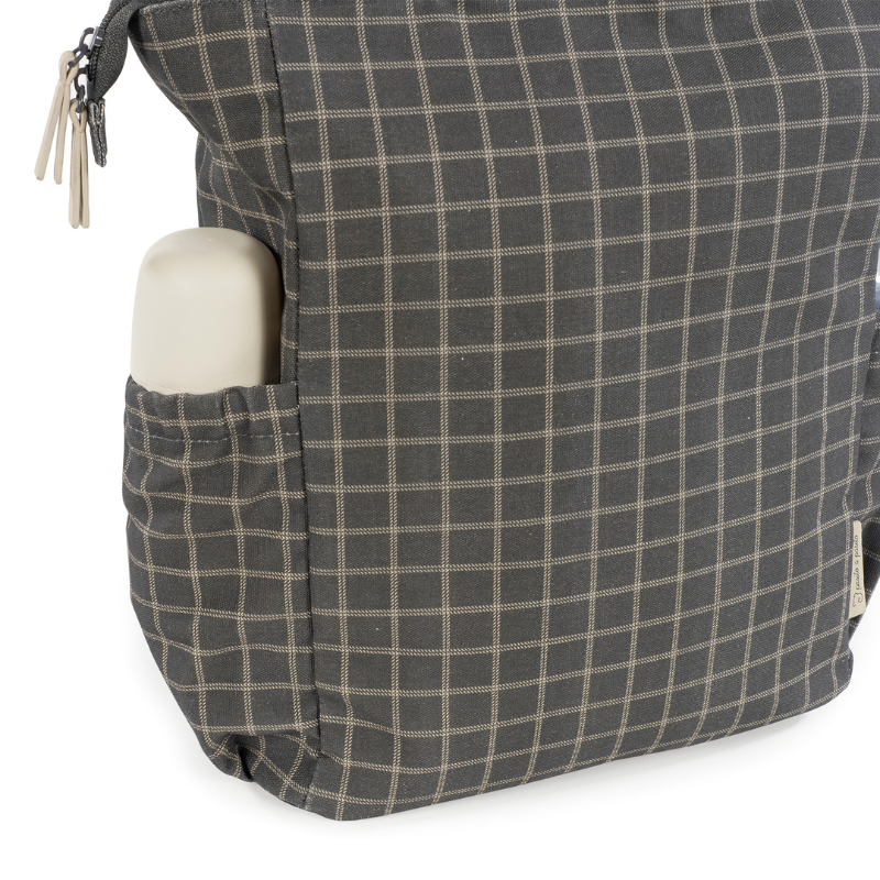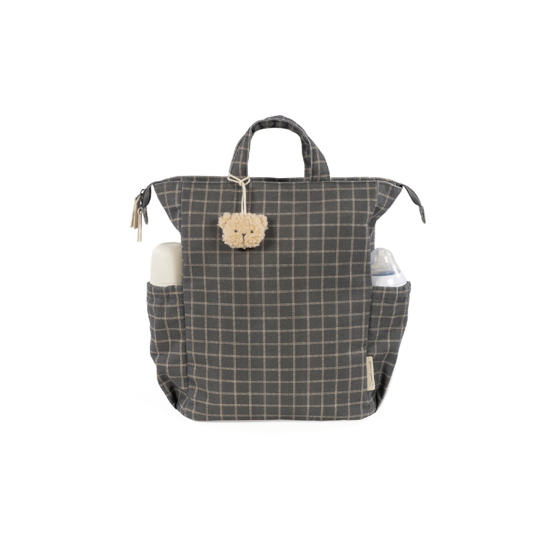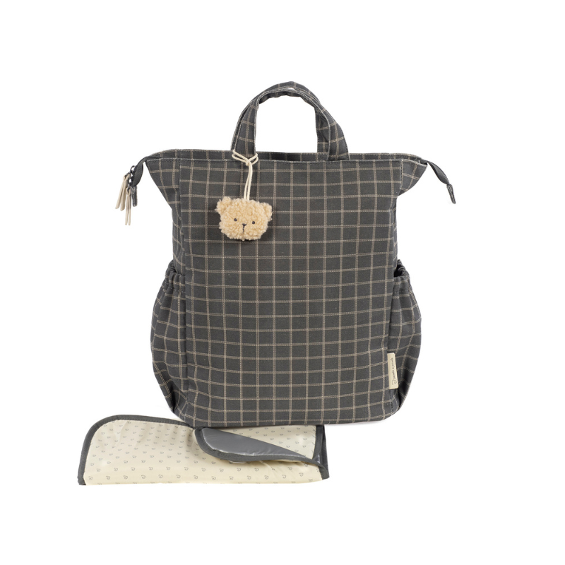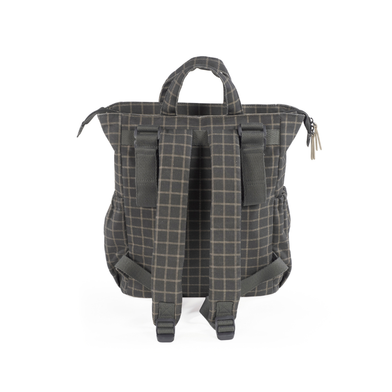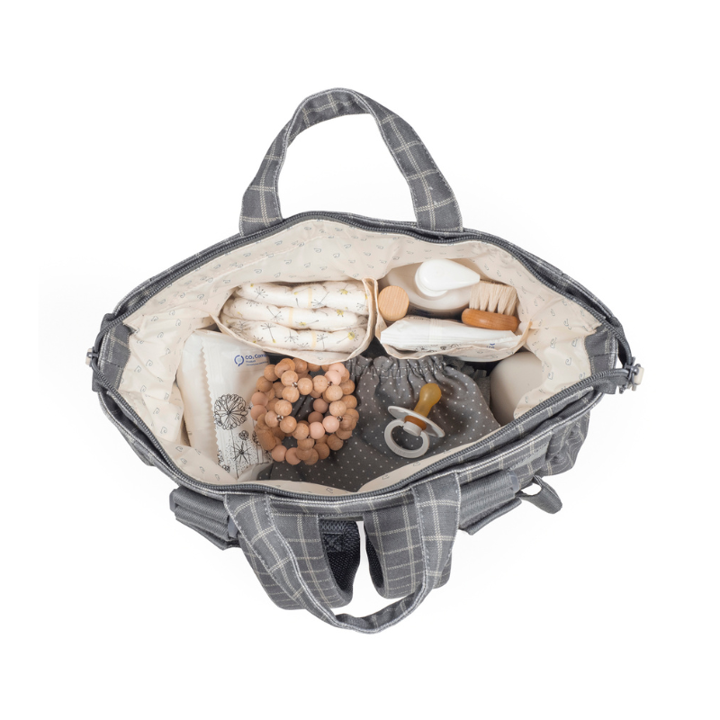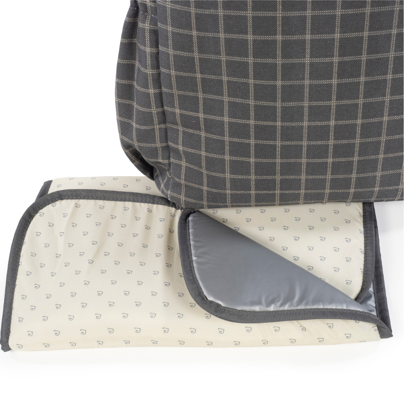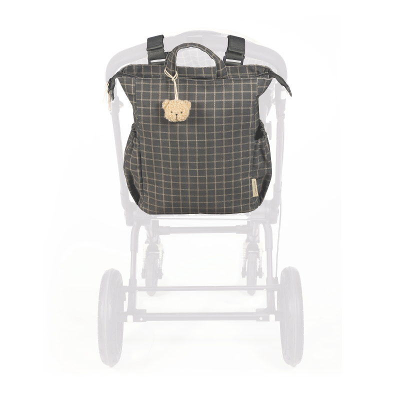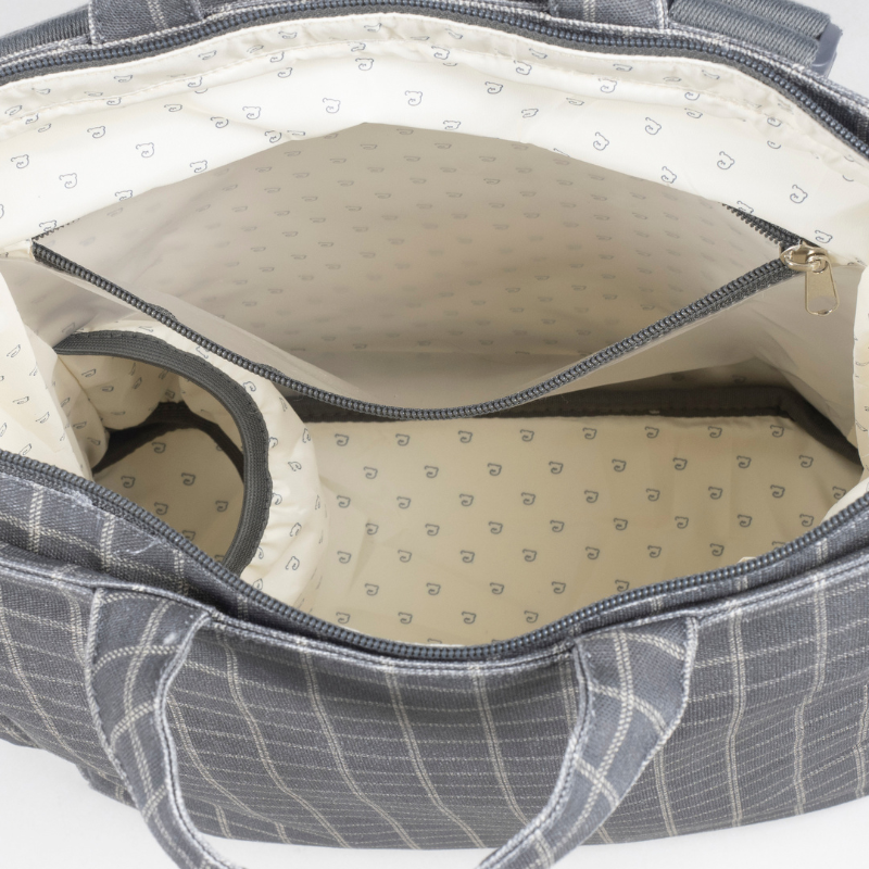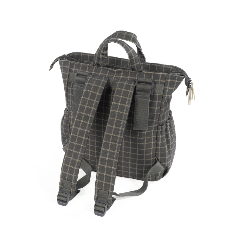 A mochila Tartan é confeccionada em algodão resistente com tratamento impermeável. Tem grande capacidade para transportar tudo o que você e o seu bebé precisam. Com bolsos interiores e exteriores para manter tudo à mão e em ordem, bolso térmico interno para garrafas e bolso impermeável para roupas molhadas. Possui 2 alças grandes ajustáveis para que possa usá-la pendurada nas costas, alças de mão e outras duas alças pequenas para que usar pendurada no carrinho. Inclui muda fraldas.