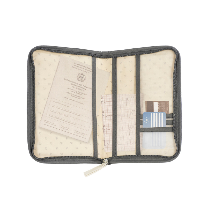 Porta documentos com design funcional para combinar com a bolsa/mochila de maternidade. Um acessório essencial para levar consigo para todo o lado e que o ajudará a manter organizada toda a documentação médica e papéis do seu bebé. Com bolsos em cada lado e forrado por dentro.