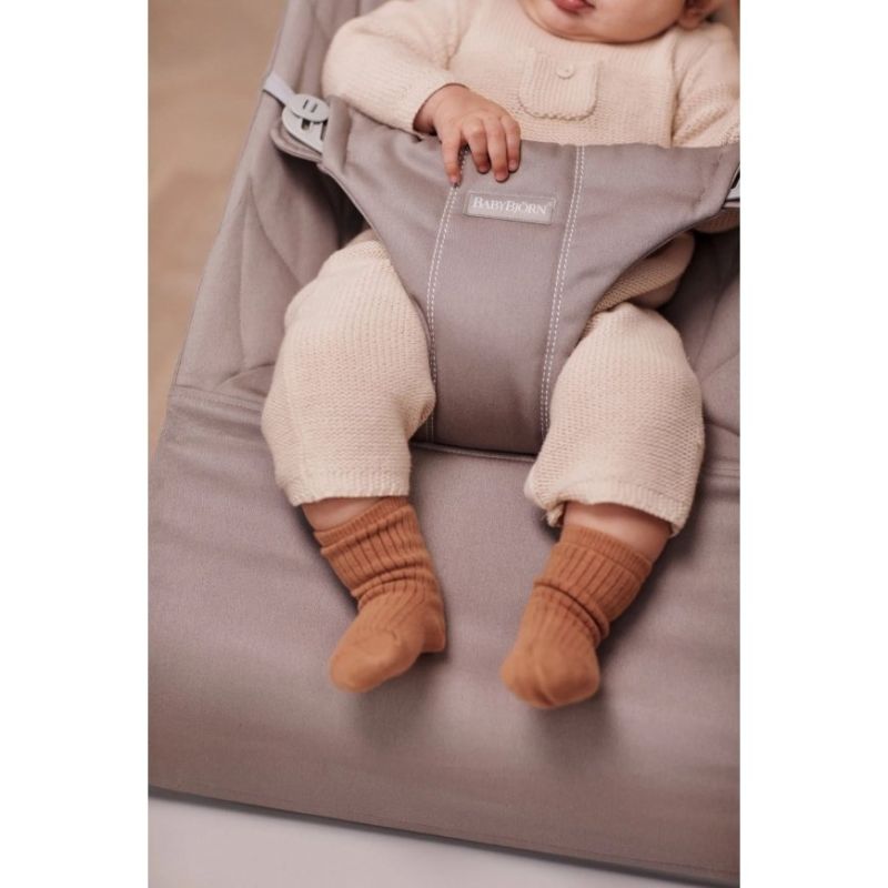 - Apoio adequado para a cabeça e as costas. As espreguiçadeiras da BabyBjörn possuem um design ergonómico que proporciona ao seu recém-nascido o apoio adequado para a cabeça e as costas. O assento de tecido se adapta ao corpo do bebé e distribui o peso uniformemente. Isto dá ao bebé um apoio adequado, o que é particularmente importante para os bebés pequenos que ainda não desenvolveram completamente a musculatura.