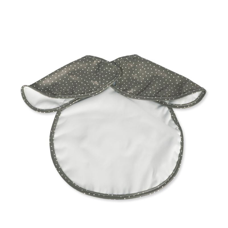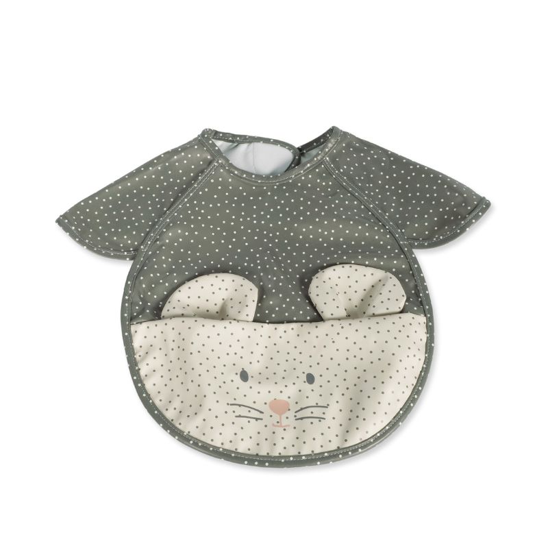 limpar e resistente às manchas e aos líquidos. Este babete com mangas curtas