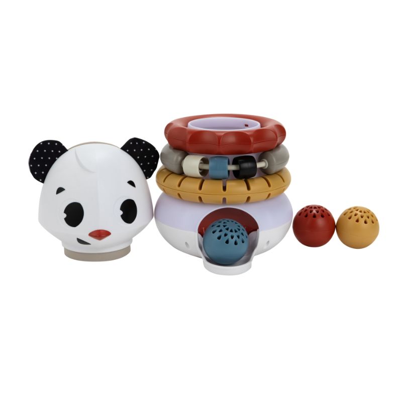 - Remova a cabeça do panda para usar o brinquedo como um divertido brinquedo de empilhar e construir uma torre de anéis