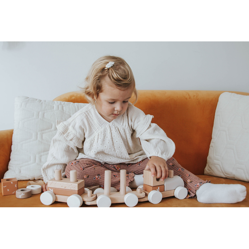 O comboio de madeira é perfeito para seu filho pequeno! Como todos os outros brinquedos de madeira, é feito de madeira de faia de alta qualidade certificada pelo FSC e os detalhes foram aplicados usando tinta à base de água, adequada para crianças. Os diferentes blocos podem ser usados sem os vagões para empilhar, construir... Os vagões podem ser engatados e retirados. Este comboio de madeira oferece, uma quantidade incrível de opções de brincadeira, para que os pequenos não fiquem entediados. Além das muitas horas de diversão, seu filho praticará suas habilidades motoras. Fantasia, imaginação e percepção espacial também são estimuladas. Graças ao seu design este comboio de madeira dá um toque de estilo em qualquer ambiente.