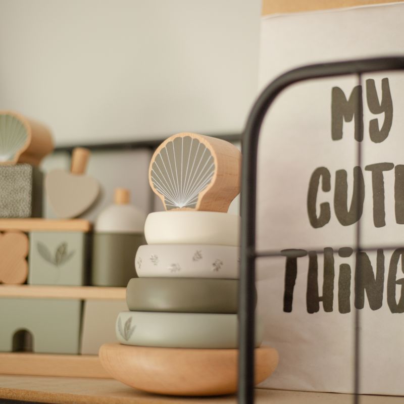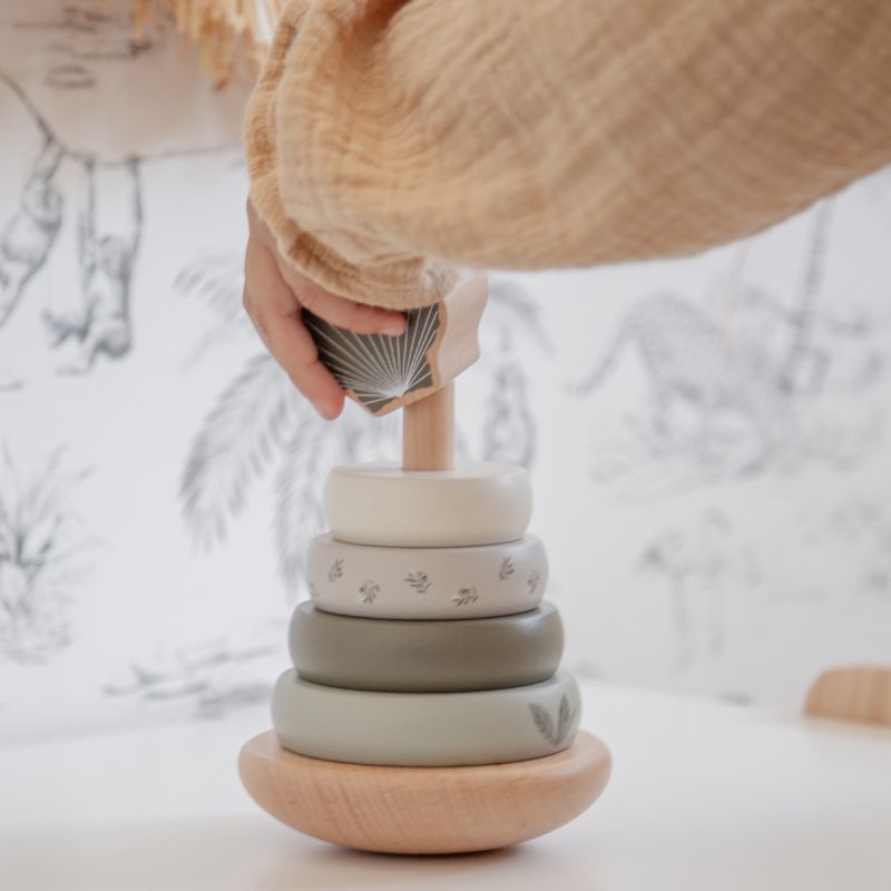 A pirâmide de equilíbrio Label Label é feita de madeira de faia de alta qualidade certificada pelo FSC. Pintada com tinta à base de água para crianças. Os anéis de empilhamento e o bloco superior têm um símbolo adorável e são fáceis de segurar para as mãos pequenas. Empilhe de grande para pequeno ou de pequeno para grande ou classifique por cor...o seu filho pode decidir por si mesmo o que gosta e, enquanto isso pratica a coordenação olho-mão e o raciocínio. Não há brincadeira? Então esta pirâmide fará com que todas as divisões brilhem, um valor decorativo extra para qualquer divisão.
