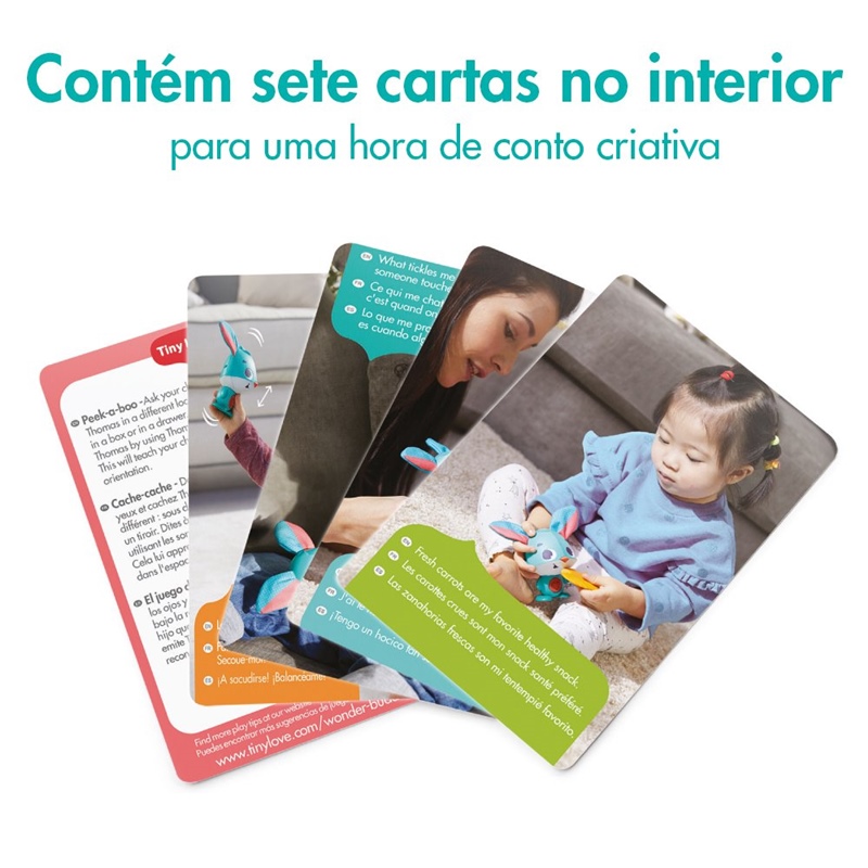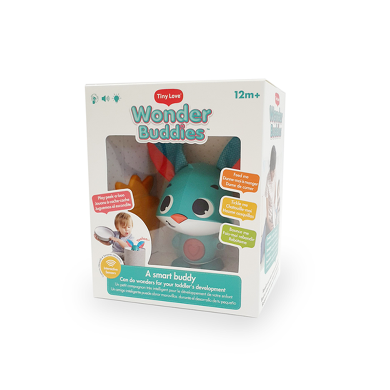 Os Wonder Buddies da Tiny Love são brinquedos inovadores e interativos que estimulam o desenvolvimento da comunicação, das faculdades cognitivas, criatividade, imaginação e muito mais. Os seus sensores inteligentes tornam a brincadeira mais excitante e interativa. Cada bonequinho tem 7 atividades concebidas para se adequarem à fase de cada bebé.