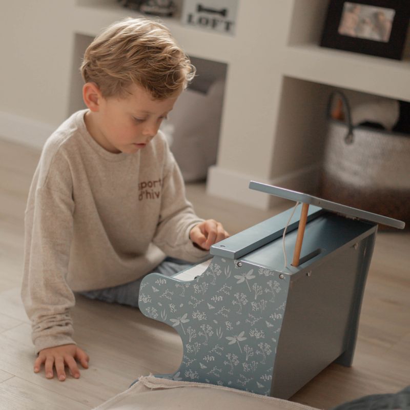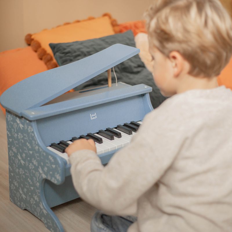 Piano de madeira com as 15 teclas brancas e as 10 teclas pretas, para os pequenos pianistas aprenderem as suas primeiras notas musicais.