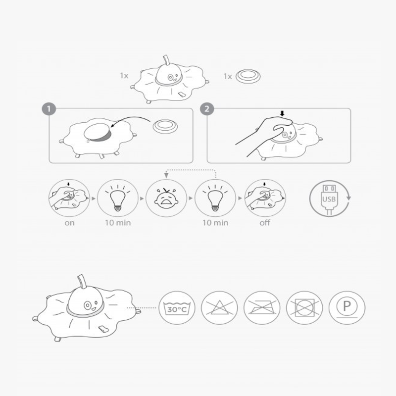 - Emite uma luz reconfortante ajudando o bebé no seu sono e acalma-o se acordar