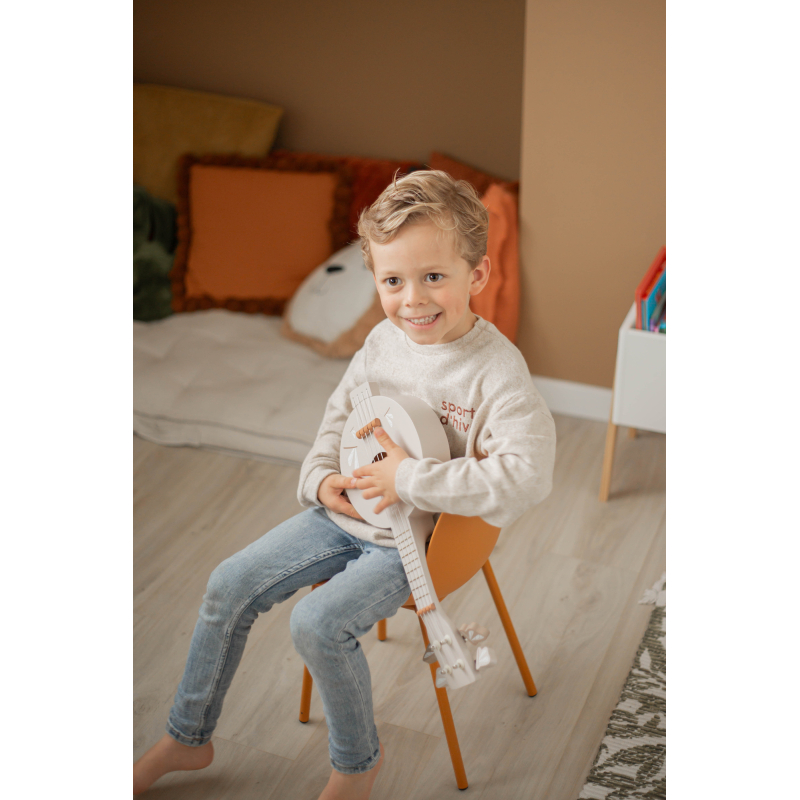 Toque os acordes certos com este pequeno e fofo banjo. As teclas de afinação podem ser afinadas para os tons perfeitos. Expanda sua pequena banda com um dos outros instrumentos da Label Label!
