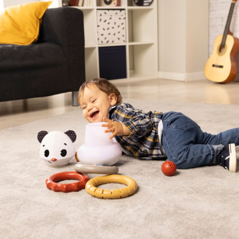 - Remova a cabeça do panda para usar o brinquedo como um divertido brinquedo de empilhar e construir uma torre de anéis