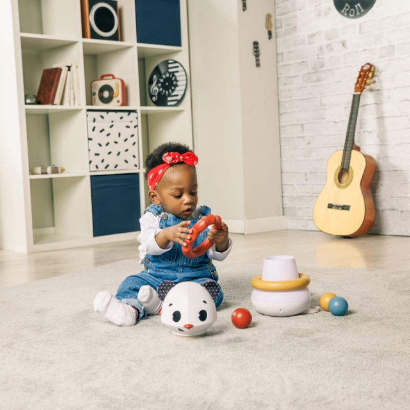 Deixe seu bebé explorar o brinquedo puxando o tecido amassado ou fazendo barulho com as bolas que fazem barulho para uma experiência gratificante. Soltar a bola no cone e emitir um sinal luminoso e sonoro introduz a ideia de causa e efeito, ação e consequência.