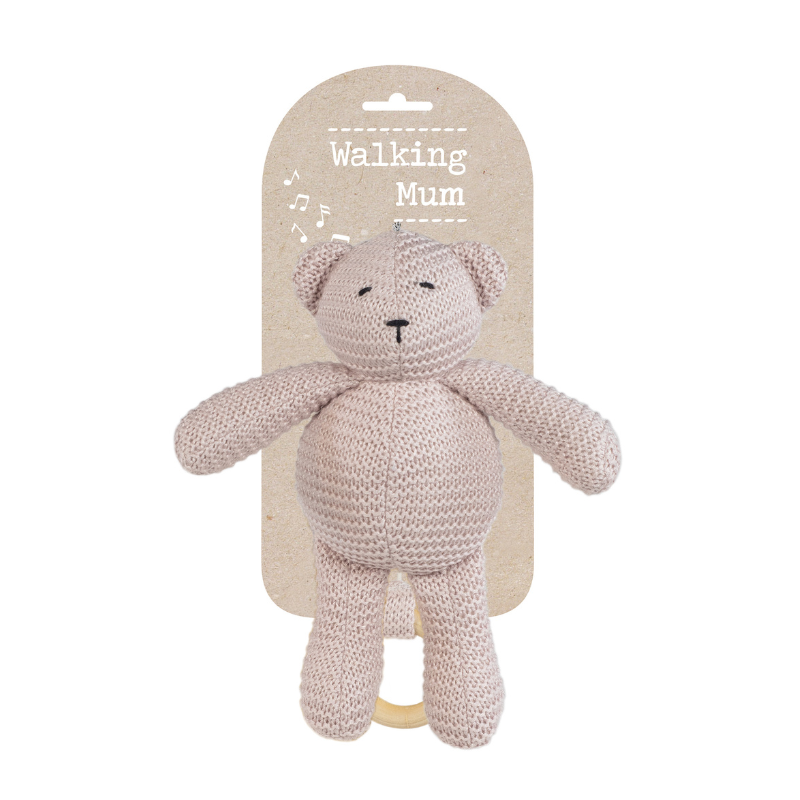 Urso de malha cinza musical, muito especial para colocar seu bebé a dormir tranquilamente.