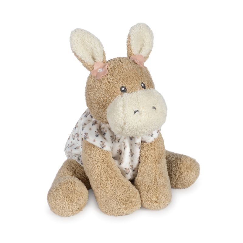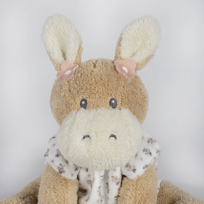 acolhedor, este burrinho de 26 cm é feito de uma combinação de pelúcia macia