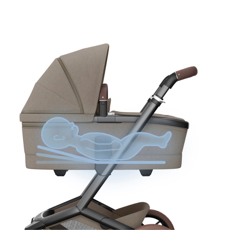 Fecha-se de forma compacta e na vertical Compatível com as cadeiras auto da Maxi-Cosi Suspensão nas 4 rodas Rodas dianteiras giratórias com sistema de bloqueio Forra do redutor é amovível e pode ser lavada à mão Os tecidos do assento e da capota, do cesto e da estrutura podem ser limpos utilizando uma esponja com água e sabão