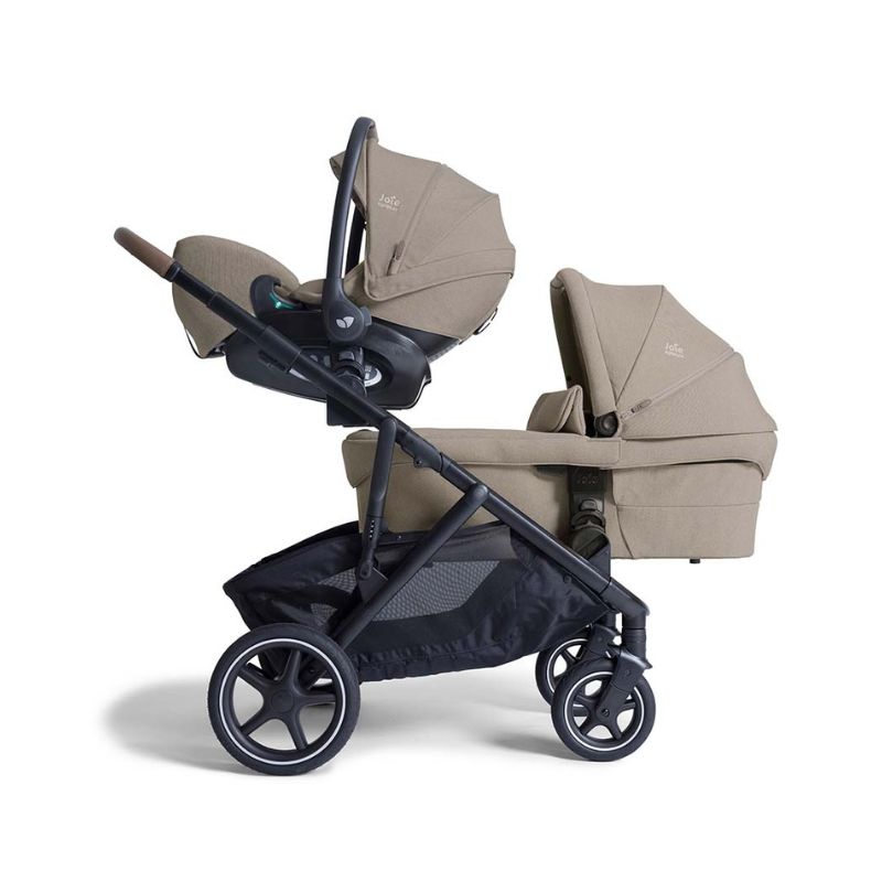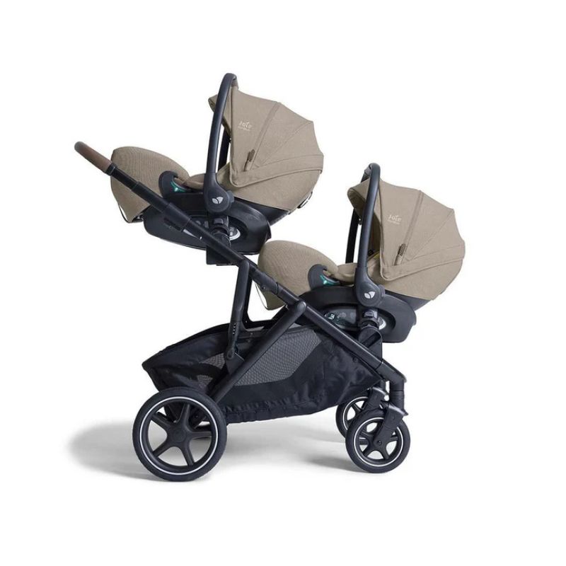 Dois assentos de carrinho (quando os bebés são mais velhos) Ou combinações mistas (ex: um ovo e uma alcofa) Adaptadores específicos são necessários para estas configurações duplas Duas alcofas Joie Ramble™ XL Signature