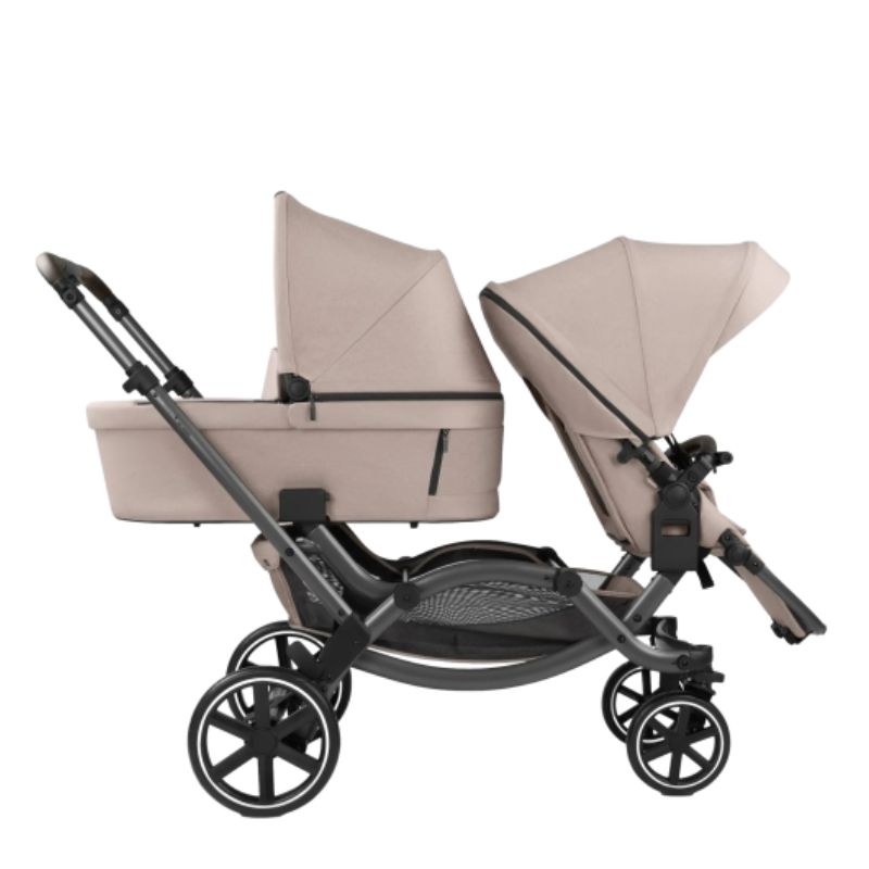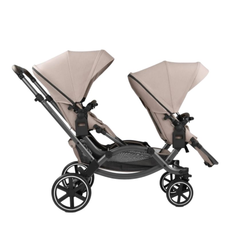 Dar à luz gémeos ou presentear seu filho com um irmão traz uma alegria indescritível, mas a emoção de ter dois filhos também traz novos desafios. O carrinho que você escolher desempenhará um papel mais importante do que nunca na vida familiar quotidiana e o Zoom dar-lhe-à a liberdade e flexibilidade que precisa. Para os seus filhos, o carrinho duplo Zoom é um lugar incrível para descobrirem o mundo juntos. Eles podem se ver, rir juntos, olhar para você e explorar o ambiente sozinhos. Dependendo da idade dos seus filhos, a cadeira, a alcofa ou a cadeira auto podem ser utilizadas em combinação, conforme desejado.