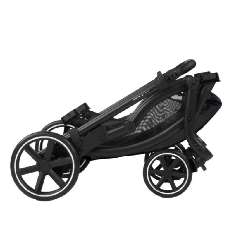 Apoio para os pés lavável Barra de pressão ajustável em altura Bloqueio para transporte Dimensões Aberto: 110 x 63 x 94 cm Dimensões Fechado: 92 x 63 x 49 cm Altura do guiador: 95 – 111 cm Peso c/assentos: 17,3 kg