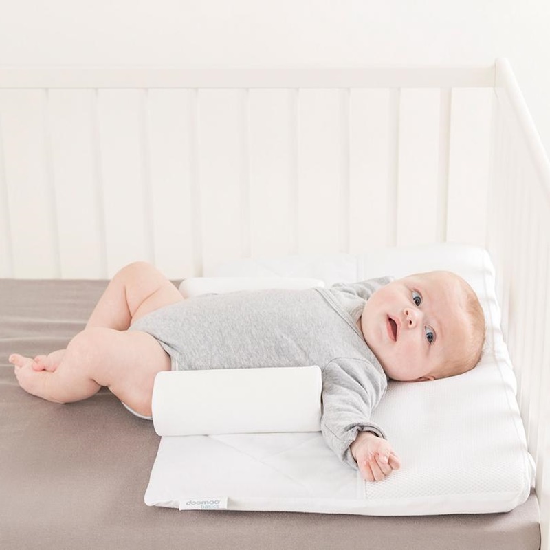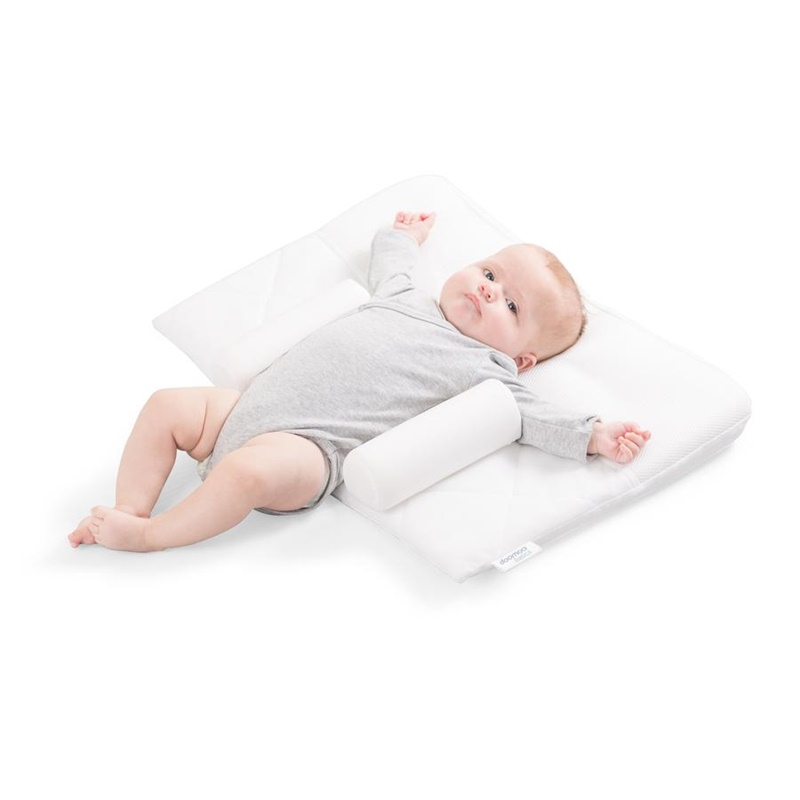 O posicionador dorsal permite que o bebé fique deitado confortavelmente de costas, prevenindo o risco de "cabeça plana" derivado desta posição.