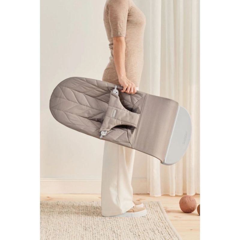 - Apoio adequado para a cabeça e as costas. As espreguiçadeiras da BabyBjörn possuem um design ergonómico que proporciona ao seu recém-nascido o apoio adequado para a cabeça e as costas. O assento de tecido se adapta ao corpo do bebé e distribui o peso uniformemente. Isto dá ao bebé um apoio adequado, o que é particularmente importante para os bebés pequenos que ainda não desenvolveram completamente a musculatura.