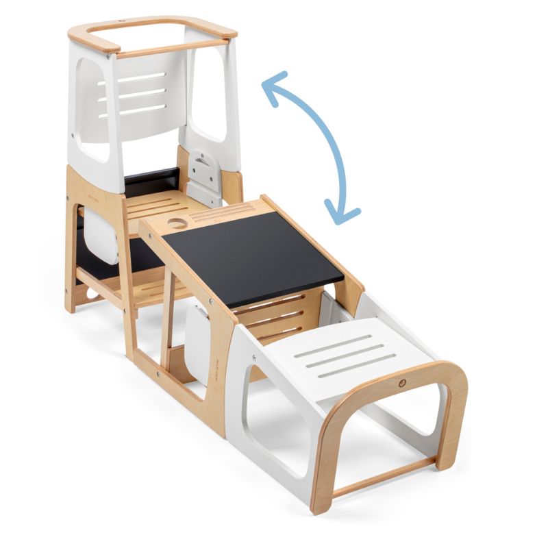 - A rotação rápida transforma a torre de aprendizagem num conjunto de mesa e cadeira