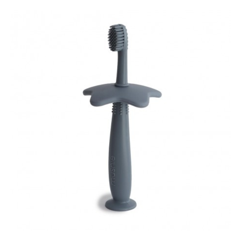 Os mais pequenos aprenderão a escovar os dentes de forma amigável e independente com esta divertida escova de dentes da Mushie. A construção de bons hábitos começa cedo e, com esta escova de dentes de treinamento, as crianças podem começar a priorizar a higiene bucal. A escova de dentes é feita 100% de silicone de qualidade alimentar e é projetada com cerdas supermacias que limpam suavemente e estimulam as gengivas e os dentes. A escova de dentes vem com uma base de sucção de silicone para maior conforto e uma proteção de segurança removível para evitar engasgos.. É totalmente seguro e fácil de usar! Escolha entre várias cores