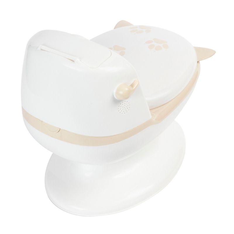Com o seu design divertido é muito atrativo para o bebé e o som de descarga imita as sanitas dos adultos.