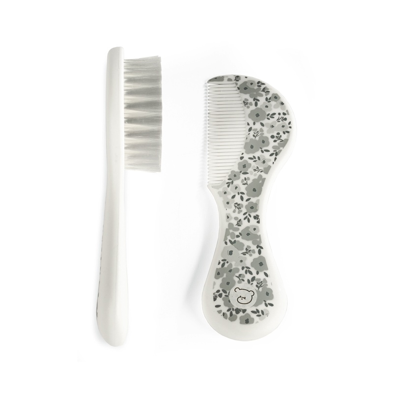 Conjunto de escova e pente adequado para cuidados com o bebé. As fibras da escova têm a suavidade e a flexibilidade ideais para não danificar os cabelos do seu bebé.
