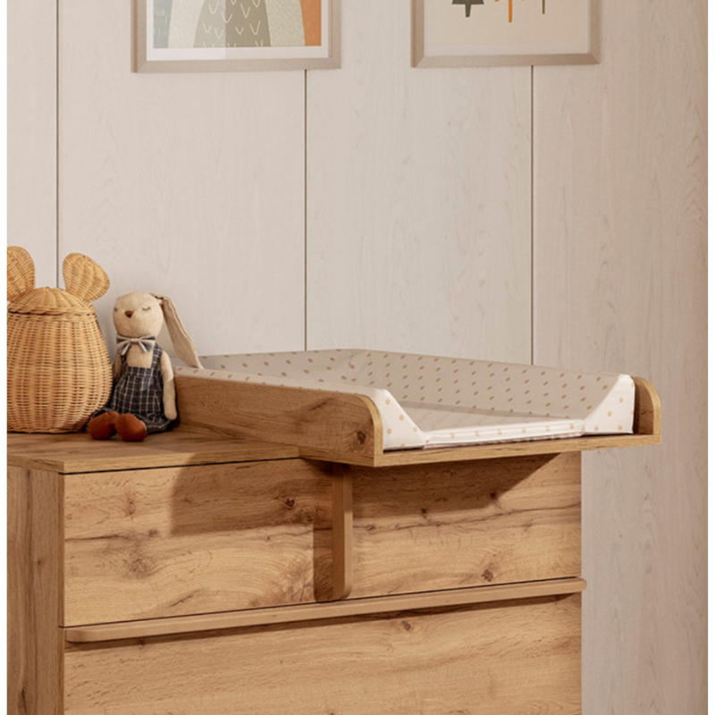 Inspirada num estilo natural e feita com madeira de florestas sustentáveis, a coleção Martha é composta por berço, guarda-roupa, banheira e cómoda onde você pode adicionar seu fraldário de bebé Martha. O fraldário com acabamento em carvalho inclui estofamento em plástico com estampa de Coelhos, fixação na parede e sistema anti-inclinação.