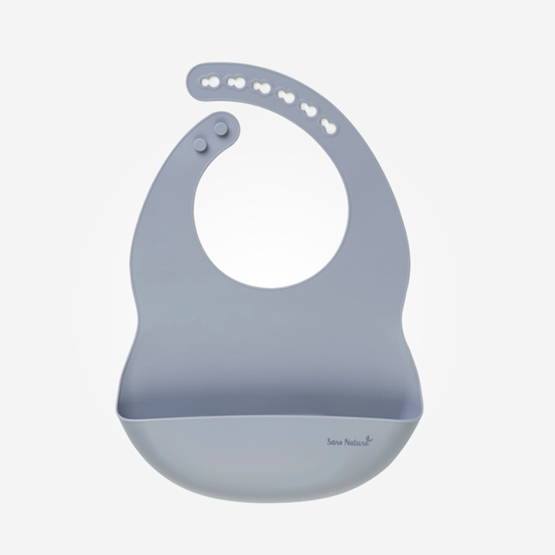 Este babete é feito com silicone alimentar, um material eco-friendly com inúmeras vantagens: antibacteriano e extremamente resistente, não se deforma, uma vez que é muito flexível. Adapta-se facilmente pois é de ajuste regulável no pescoço. Possui um bolso para apanhar as migalhas e restos de comida que possam cair.