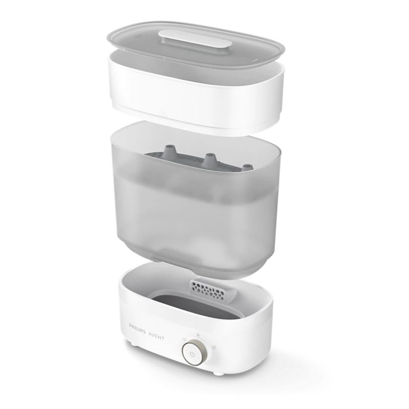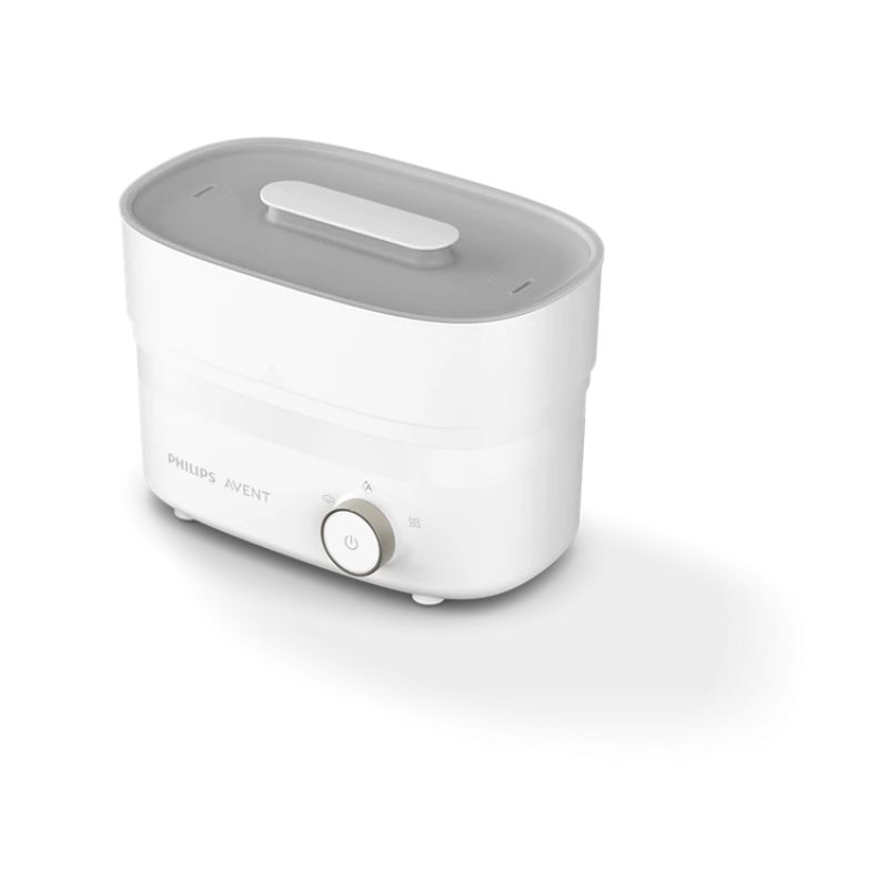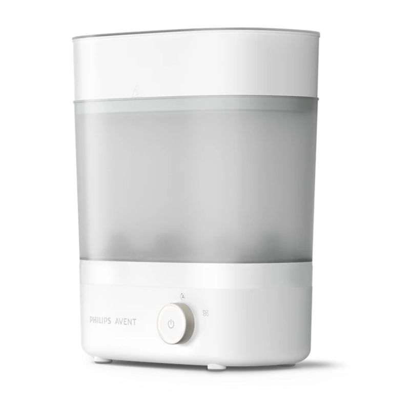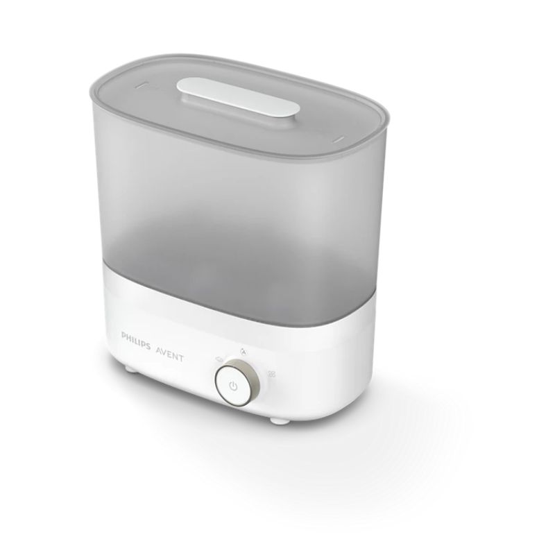 Esteja a postos para a próxima refeição do bebé em 40 minutos. O Esterilizador de biberões e o Secador de alta qualidade utiliza jatos de ar filtrado para secar os biberões antes de desligar. O esterilizador é rápido e higiénico, eliminando 99,9% dos germes* para maior tranquilidade em todas as refeições.