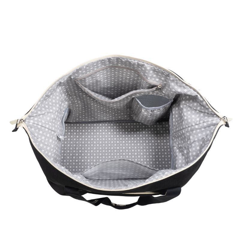 A bolsa XL Eco Mum Black é confeccionada com rPET (poliéster reciclado pós-consumo). O rPET que usamos é feito de plástico PET reciclado de garrafas de água. A utilização deste material reduz o consumo de água, o consumo de energia e a emissão de CO2. Bolsa de grande capacidade com vários bolsos para manter tudo organizado nos seus passeios ou viagens com o seu bebé. Possui dois bolsos laterais e um bolso frontal com zíper na parte externa. No interior possui bolso térmico para garrafas e dois bolsos laterais, um deles com zíper. A bolsa tem 2 alças curtas e uma alça longa para poder pendurá-la no ombro. Ótima qualidade e muito estilo.