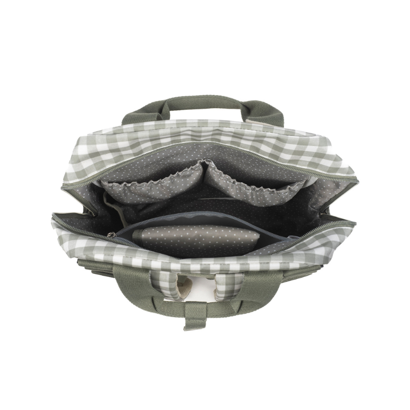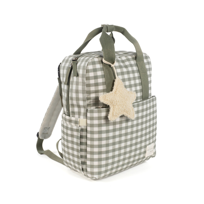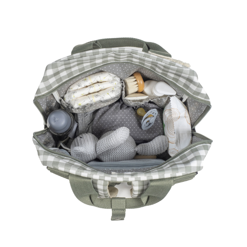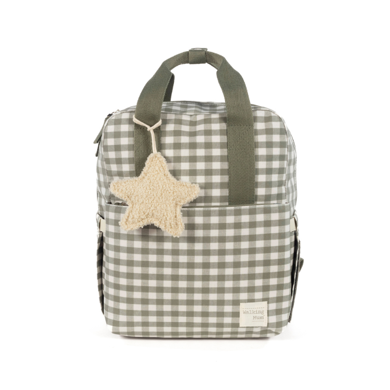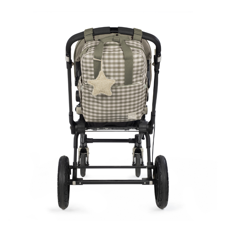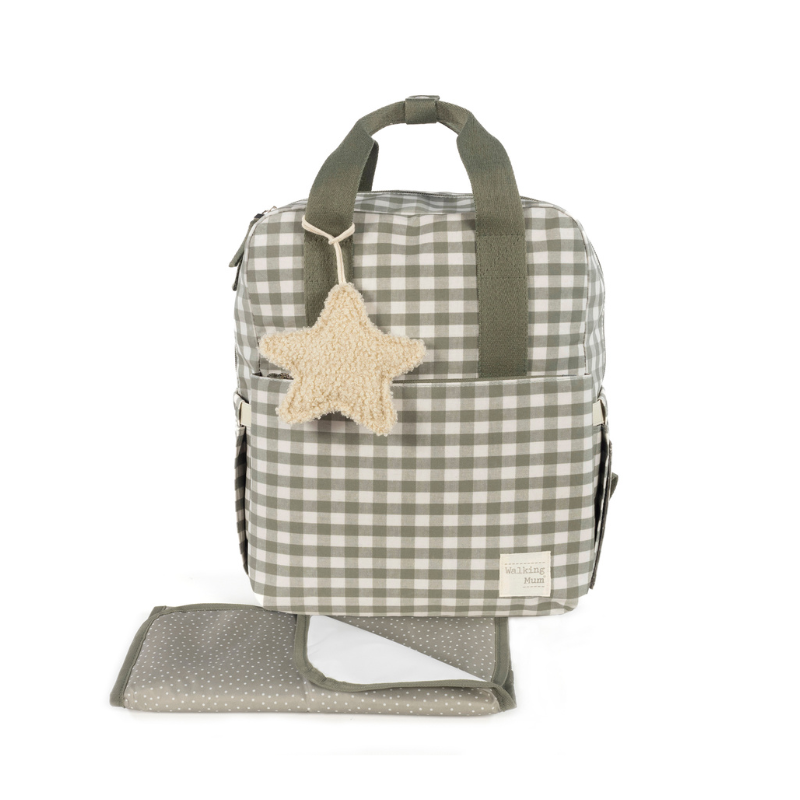 Mochila muito moderna e urbana, ideal para levar suas coisas e as coisas do seu bebé, com estilo, em todos os seus passeios. Modelo muito leve, resistente e multifuncional com grande capacidade para levar tudo o que precisa. Inclui um pingente de estrela onde pode bordar o nome do seu bebé. Tem vários bolsos externos e internos para manter tudo organizado e à mão.Inclui um muda fraldas para combinar com a bolsa de maternidade e um bolso laminado para guardar roupas molhadas e isolar a humidade do resto da bolsa. Também possui um bolso externo para toalhitas. A bolsa inclui 2 alças curtas ajustáveis ​​que facilitam a fixação em qualquer modelo de carrinho, alças de mão e alças acolchoadas para pendurar nos ombros