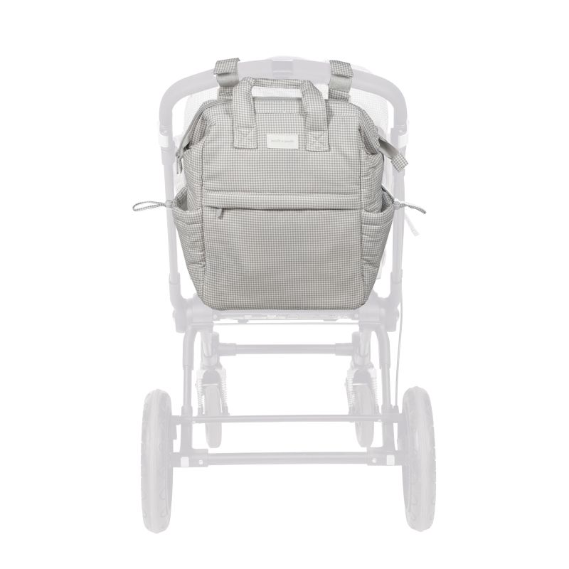 Mochila 100% algodão com tratamento impermeabilizante garante proteção e durabilidade no dia a dia. Esta mochila oferece grande capacidade e múltiplos compartimentos, facilitando a organização de tudo o que precisa para o seu bebé. Bolsos internos e externos mantêm tudo à mão e organizado. Possui também dois bolsos laterais para biberões. Com duas alças grandes ajustáveis ​​para que possa usá-la nas costas, alças de mão e duas alças menores para pendurá-la no carrinho de bebé. Inclui um prático trocador portátil, proporcionando conveniência em qualquer lugar.