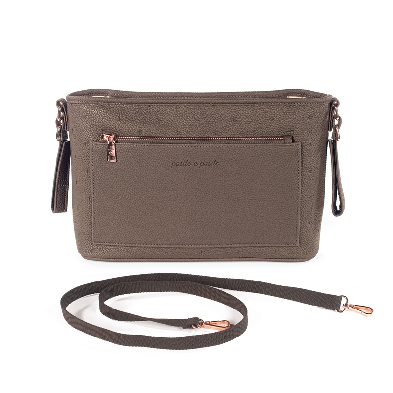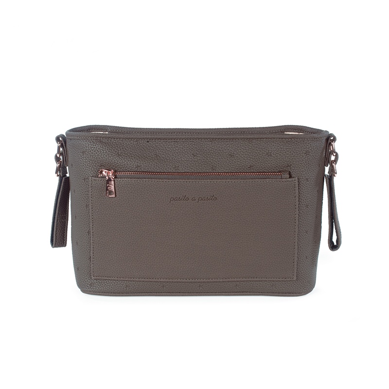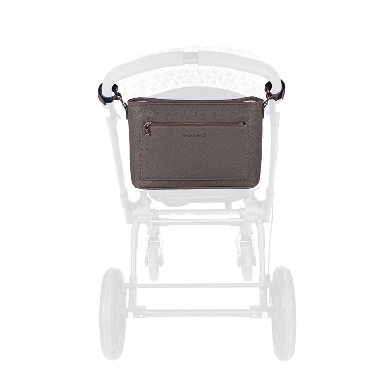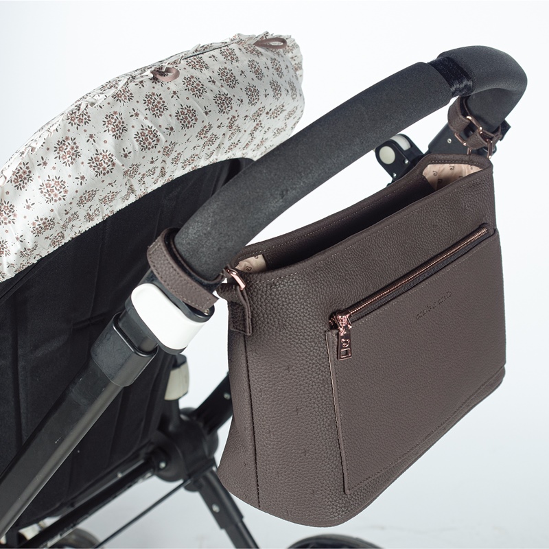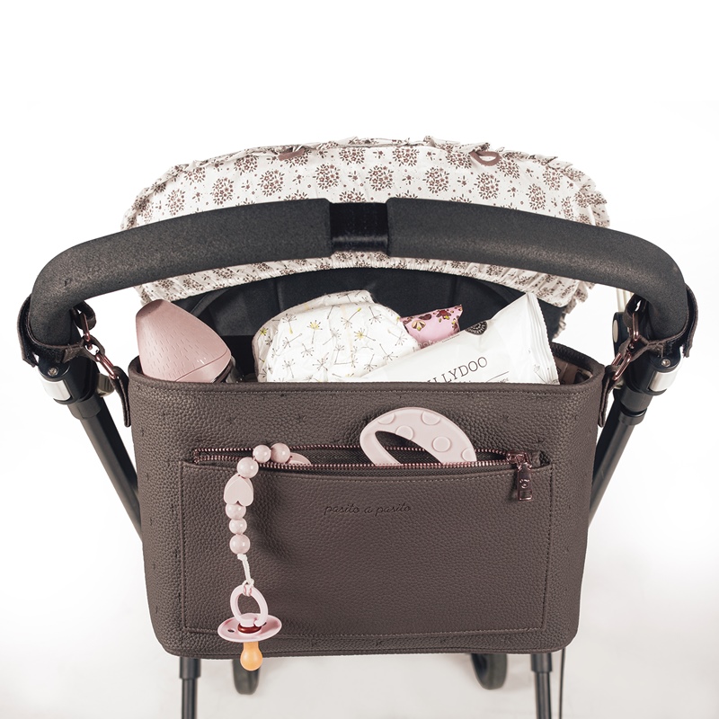 O organizador de carrinho London tem capacidade para transportar tudo o que precisa para um passeio rápido com o seu bebé. Tem bolsos exteriores e interiores para manter tudo arrumado e à mão, e tem também um bolso plástico para colocar as peças sujas do seu bebé. Com duas alças pequenas e uma grande, pode usar o organizador pendurado no carrinho ou colocá-lo ao ombro.