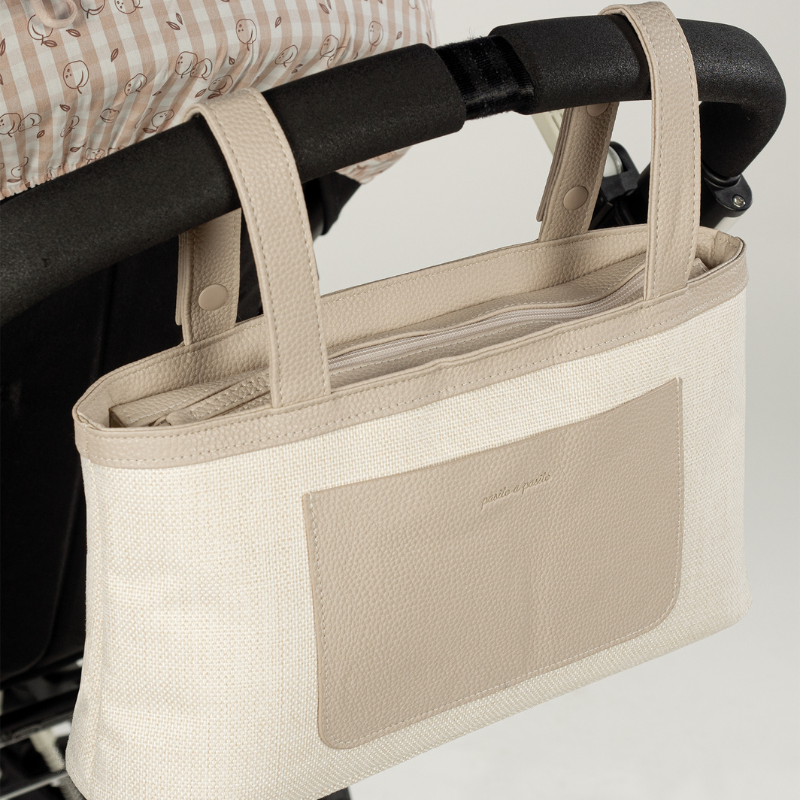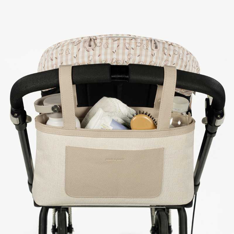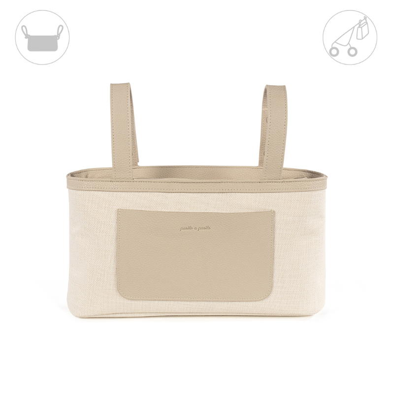 O organizador de carrinho em tela bege é um modelo muito leve, além de resistente e espaçoso para que possa levar tudo o que precisa durante o passeio do seu bebé. Para além da sua grande capacidade, está distribuído para facilitar a organização, com vários bolsos exteriores e interiores que o ajudarão a colocar todos os seus acessórios em ordem e assim poder localizá-los mais facilmente quando for a utilizar. O seu design torna-o perfeito para usar diariamente e combinar com os seus looks.