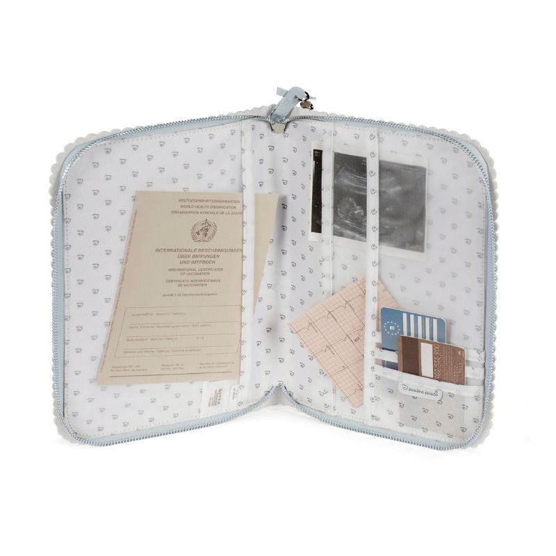 Interior forrado com vários separadores para guardar todos os documentos do bebé Pode ser lavado à mão ou na máquina a 30º Acabamentos de qualidade