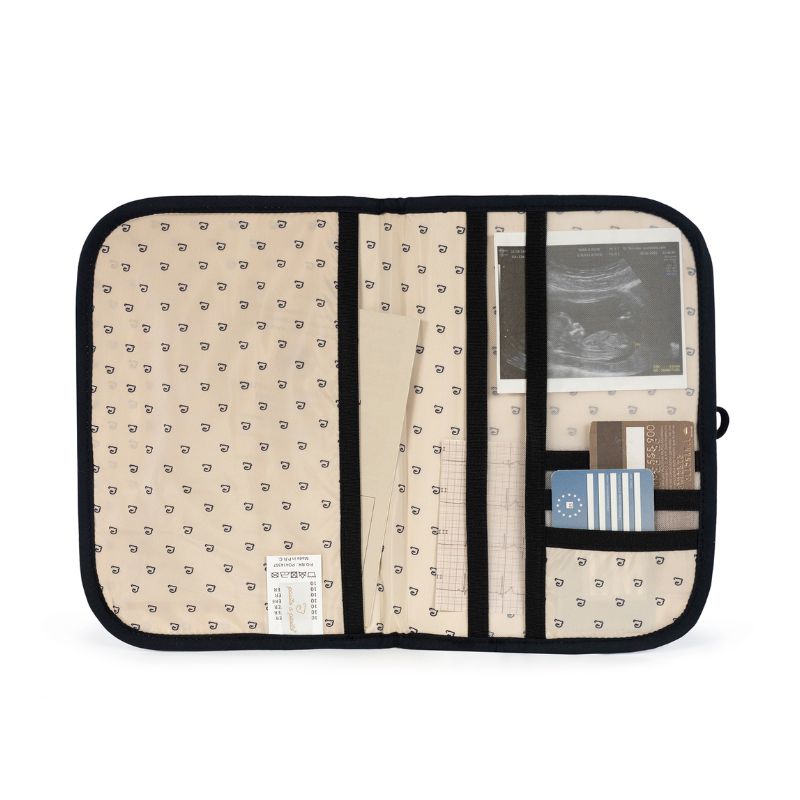 Este moderno porta documentos de bebé Paddington da Pasito a Pasito feito de material acolchoado durável é um porta-documentos de design funcional para combinar com a bolsa de maternidade. Um acessório essencial para levar consigo para todo o lado e que o ajudará a manter organizada toda a documentação médica e papéis do seu bebé. Também é uma boa ideia como um livro onde você pode guardar documentos, ecografias, dados importantes e tudo que deseja manter relacionado ao seu bebé. Este livro porta-documentos é feito de material resistente e macio, possui bolsos de cada lado e é forrado por dentro. Possui um prático fecho com zíper para guardar com segurança o livro de nascimento e todos os documentos do seu bebé. Acabamentos de qualidade.