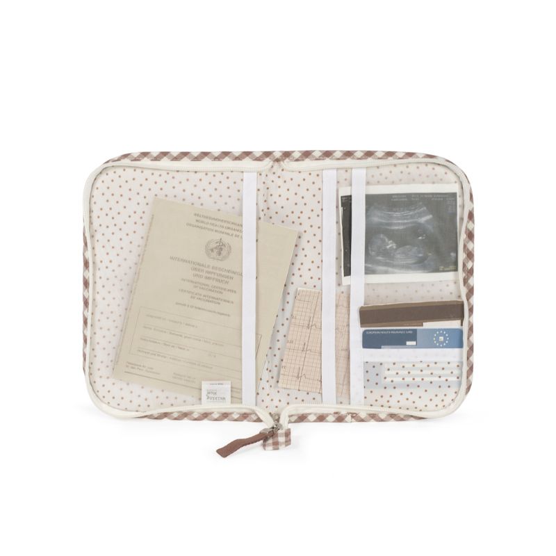 O livro de nascimento Praliné Vichy Moka é uma prática pasta porta-documentos, com design a condizer com a mala de maternidade. Um acessório indispensável para levar consigo para todo o lado, que ajuda a manter organizada toda a documentação e os papéis médicos do seu bebé, como vacinas, receitas e certidão de nascimento.