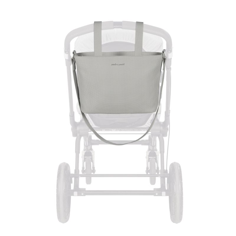 Feita de couro ecológico resistente e delicado, é um modelo leve, resistente e espaçoso para levar tudo o que precisa durante o passeio do seu bebé. Além da grande capacidade, tem diversos bolsos que ajudam a manter todos os acessórios em ordem, para que os encontre com mais facilidade quando precisar. Possui um bolso térmico interno para biberões. A bolsa tem alça dupla: uma longa para usar no ombro e uma curta para pendurar no carrinho.