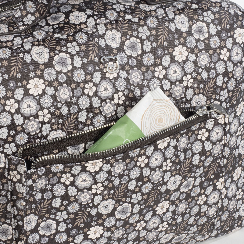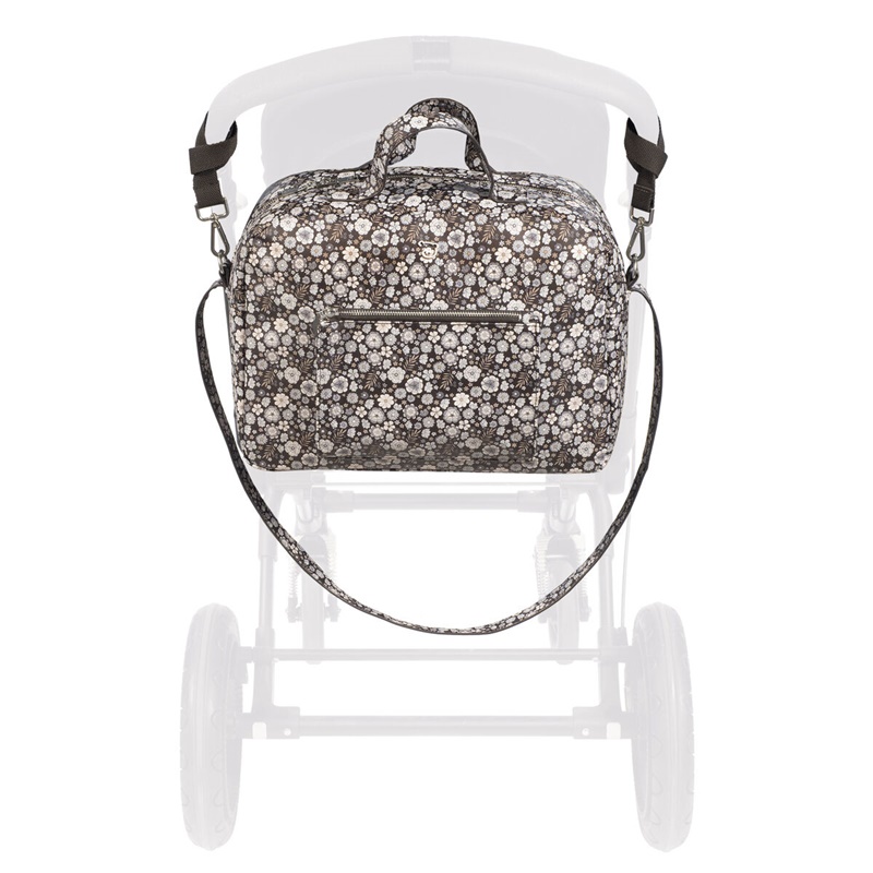 O saco para carrinho de bebé Blossom é um modelo único, confeccionado em couro sintético resistente e delicado. Design muito elegante e prático que oferece grande capacidade para transportar tudo o que precisa durante o passeio como seu bebé. Vem equipado com alças duplas, uma longa para pendurar no ombro e outra curta para transportar. Inclui alças universais adicionais para pendurá-lo no carrinho. Possui forro interno e bolsos para organizar os biberões, talheres, lenços umedecidos, fraldas, cremes e tudo mais que seu filho precisar. Inclui trocador.