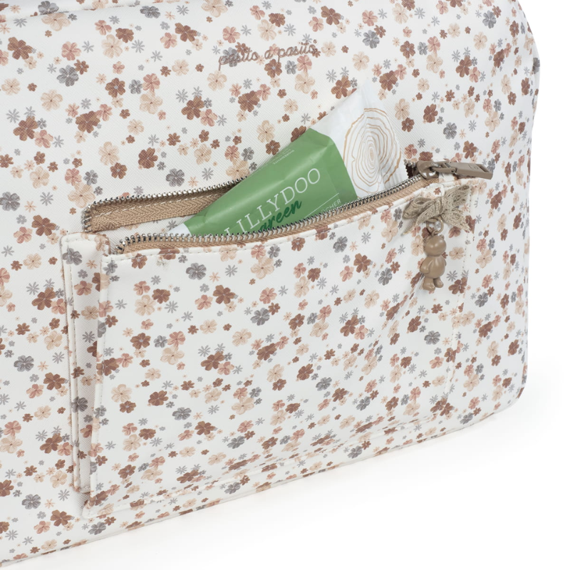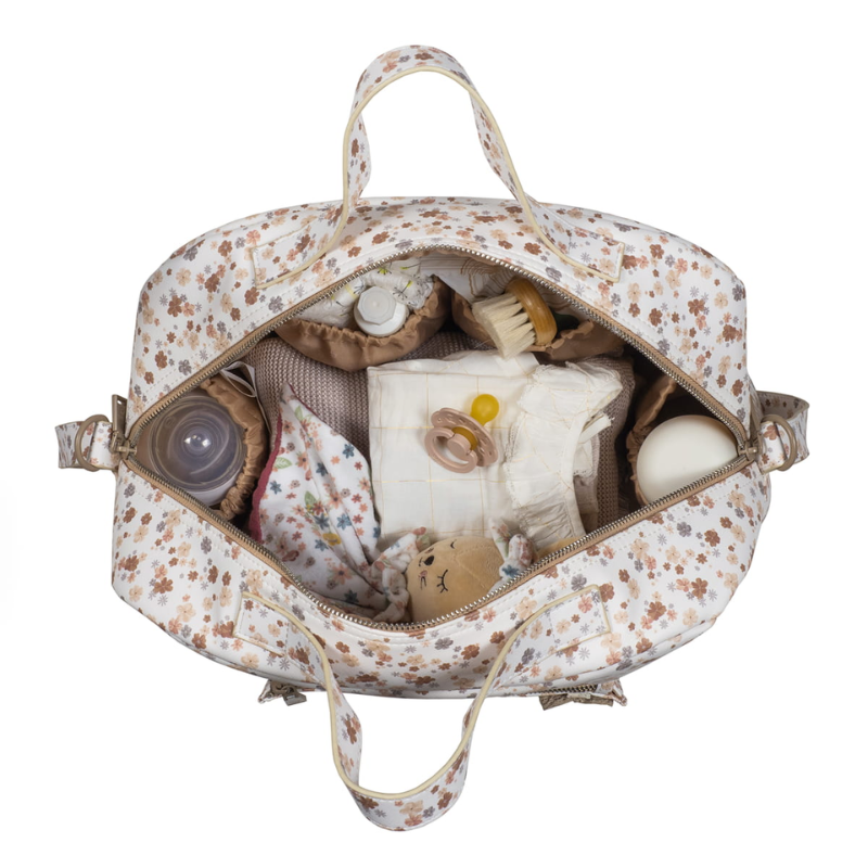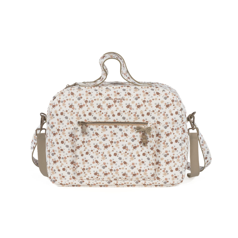 A bolsa Somerset é um modelo único, confeccionado em imitação de couro, resistente e delicado para transportar tudo o que o seu bebé precisa quando saem de casa. É um design muito elegante e prático que oferece grande capacidade para transportar tudo. Vem equipado com alças duplas, uma longa para pendurar no ombro e outra curta para transportar. Inclui alças universais adicionais para pendurá-lo no carrinho. Também pode utilizá-lo para guardar as suas coisas e assim evitar carregar duas malas ao mesmo tempo ou para levar para o hospital. Possui forro interno e bolsos para organizar biberões, talheres, toalhitas, fraldas, cremes e tudo mais que o seu filho precisar. Entre os bolsos existe um bolso térmico para garrafas e um bolso impermeável para roupas molhadas. Inclui muda fraldas.