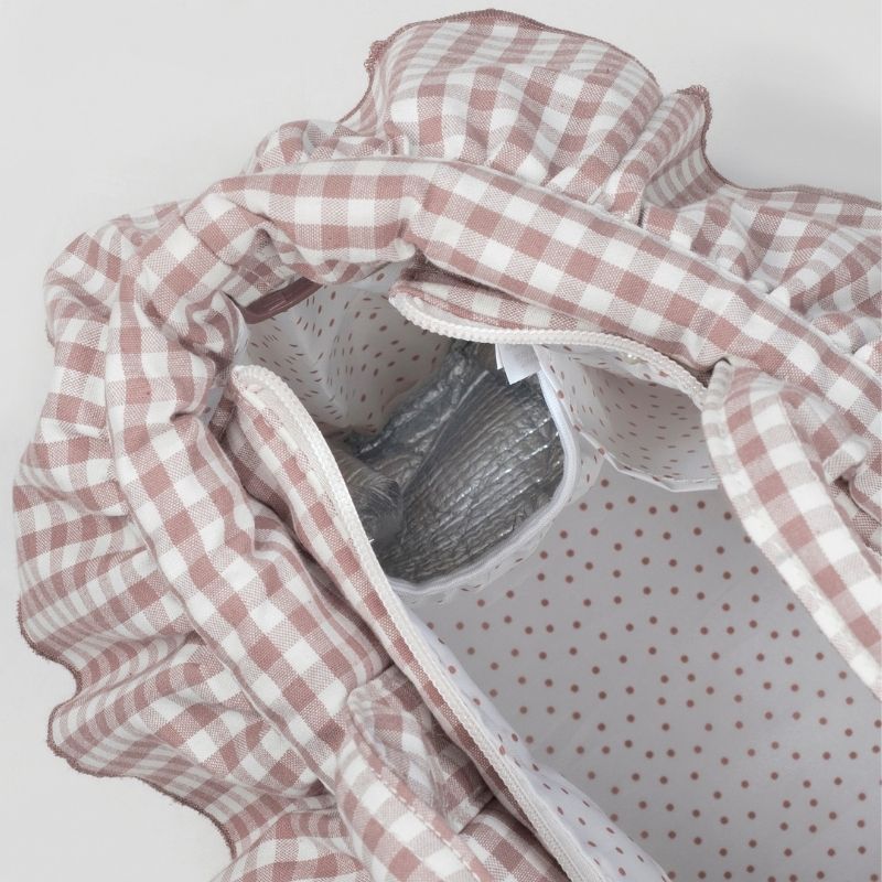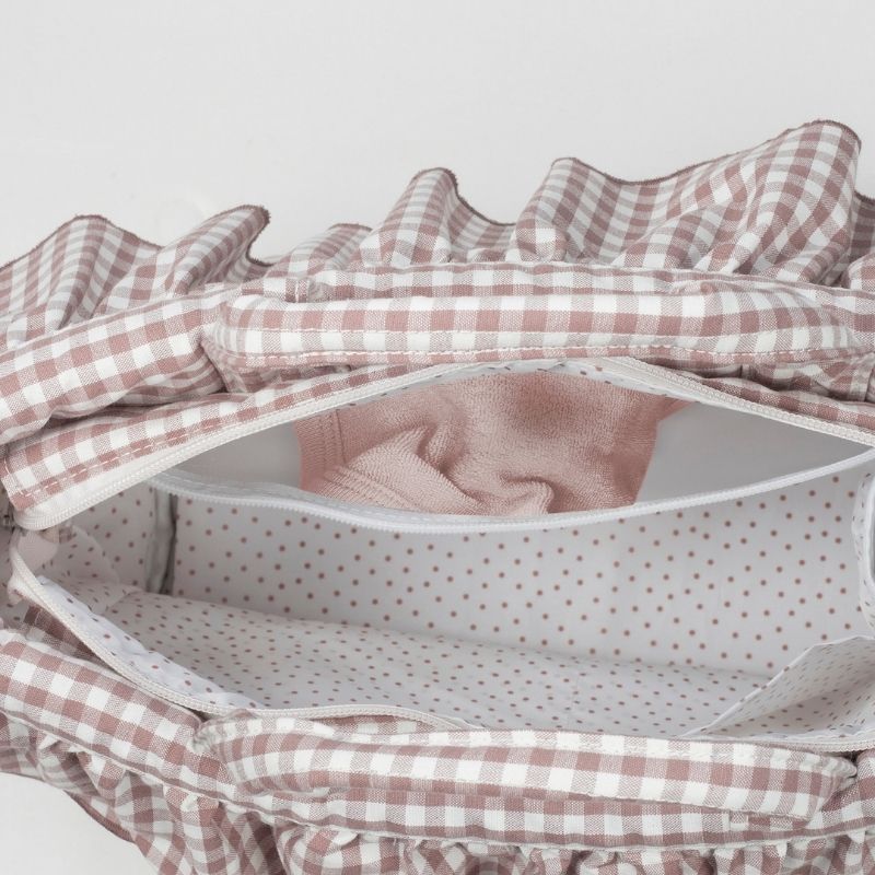 Bolsa leve, resistente e espaçosa, ideal para os passeios com o bebé. Inclui muda-fraldas e vários bolsos para manter tudo organizado, como bolso plastificado para roupa húmida, bolso térmico para biberões e compartimentos para essenciais.