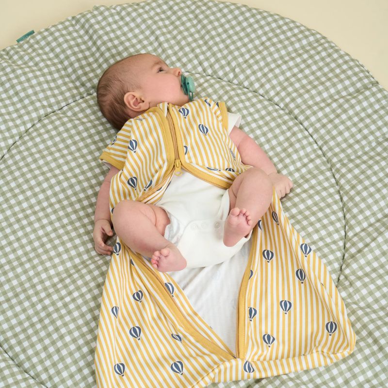 Ao usar nossos sacos de dormir de verão, recomendamos que os bebés usem apenas body de manga curta ou mesmo apenas fralda Um