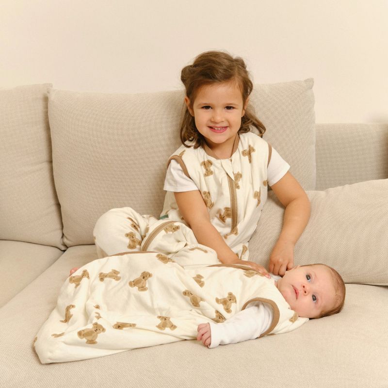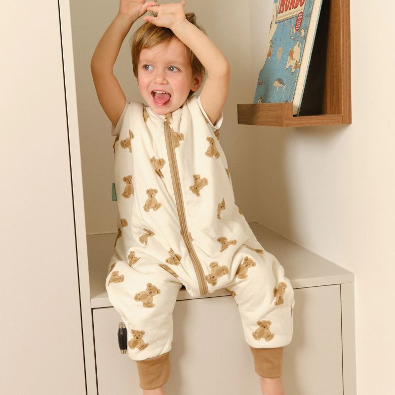 - Dependendo da temperatura, você pode colocar um body ou pijama de manga curta ou longa por baixo do saco de dormir